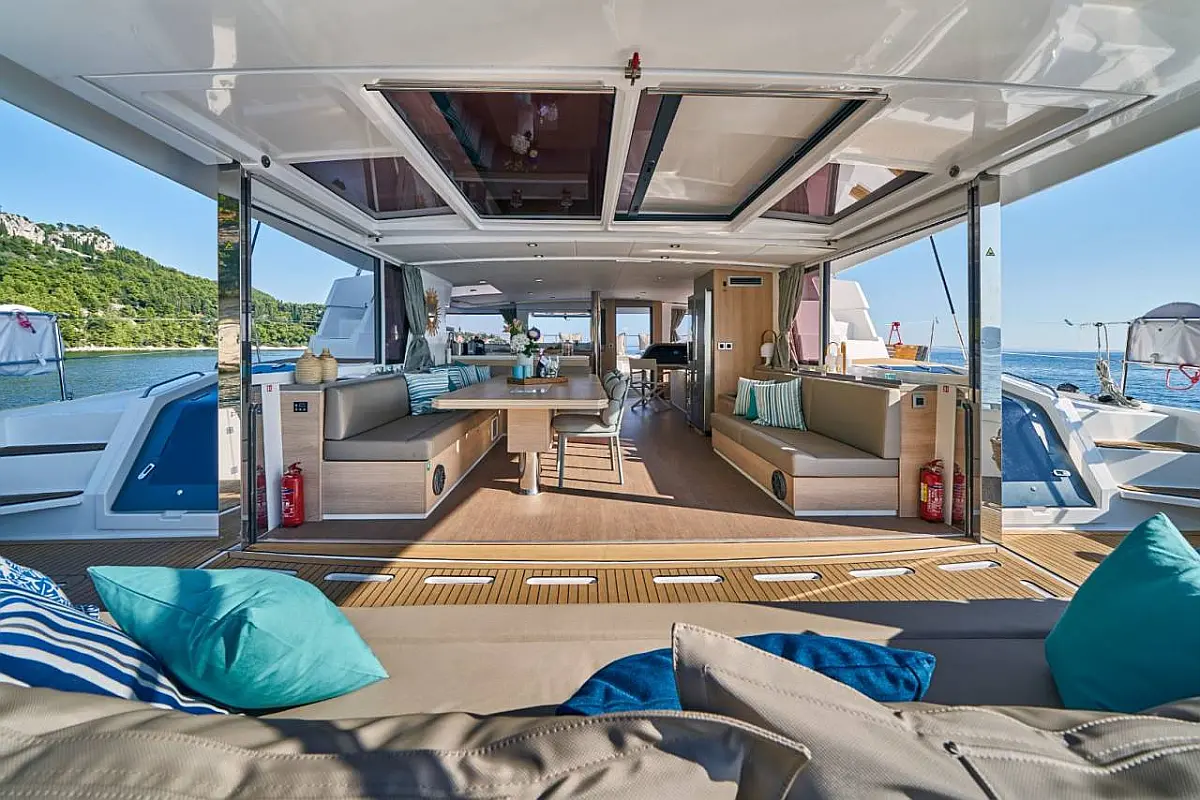 Air condition, Bimini, Cockpit cushions, Dinghy, Electric winches, Electric toilet, Coffee maker, Flybridge, Refrigerator, Generator, Inverter, Solar Panels, Teak Cockpit, Water maker