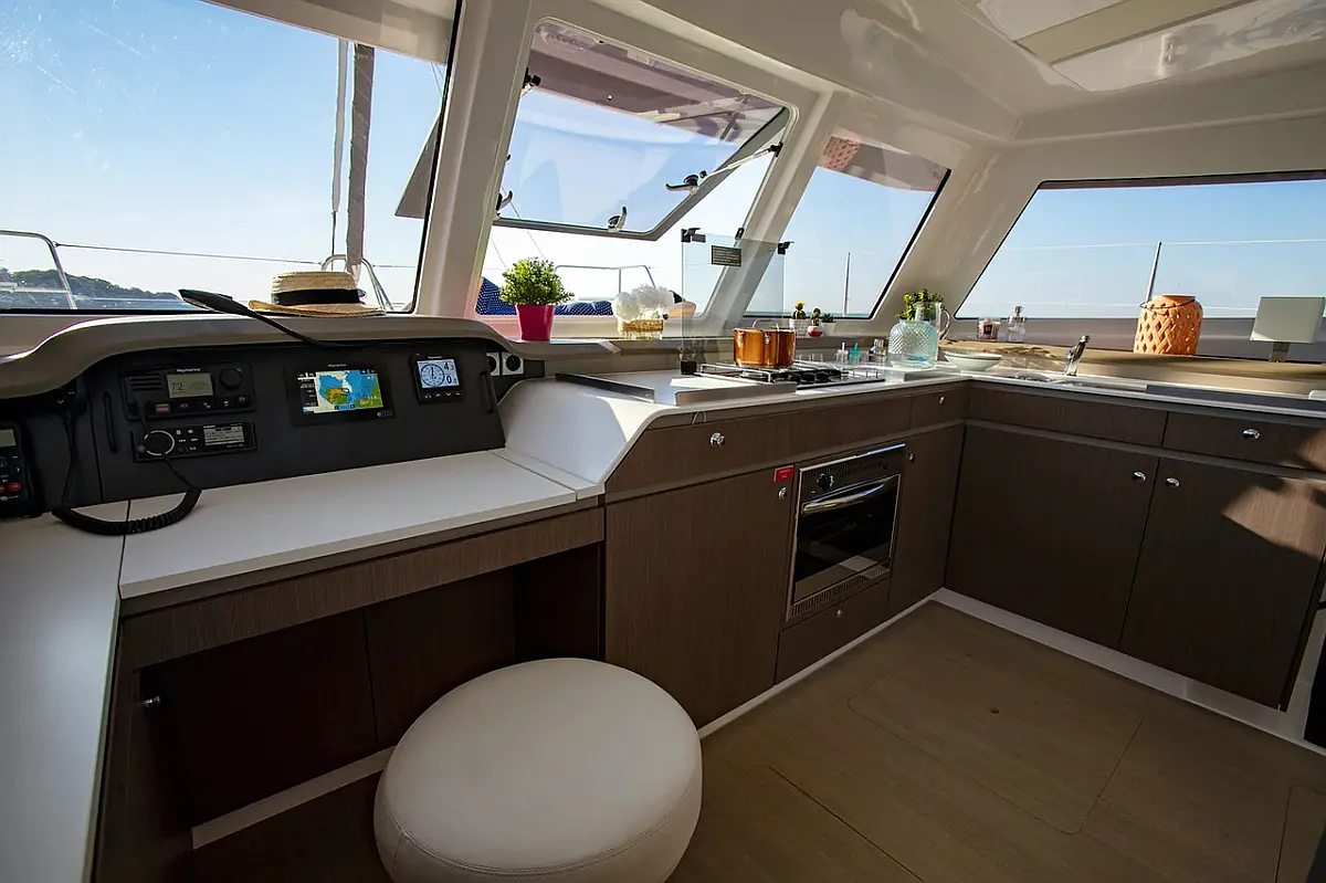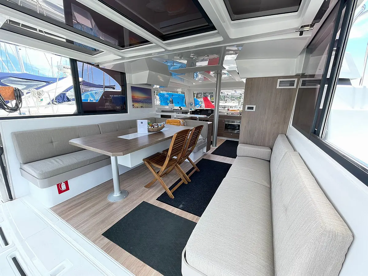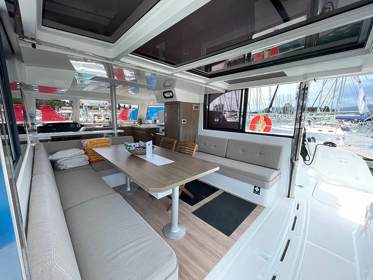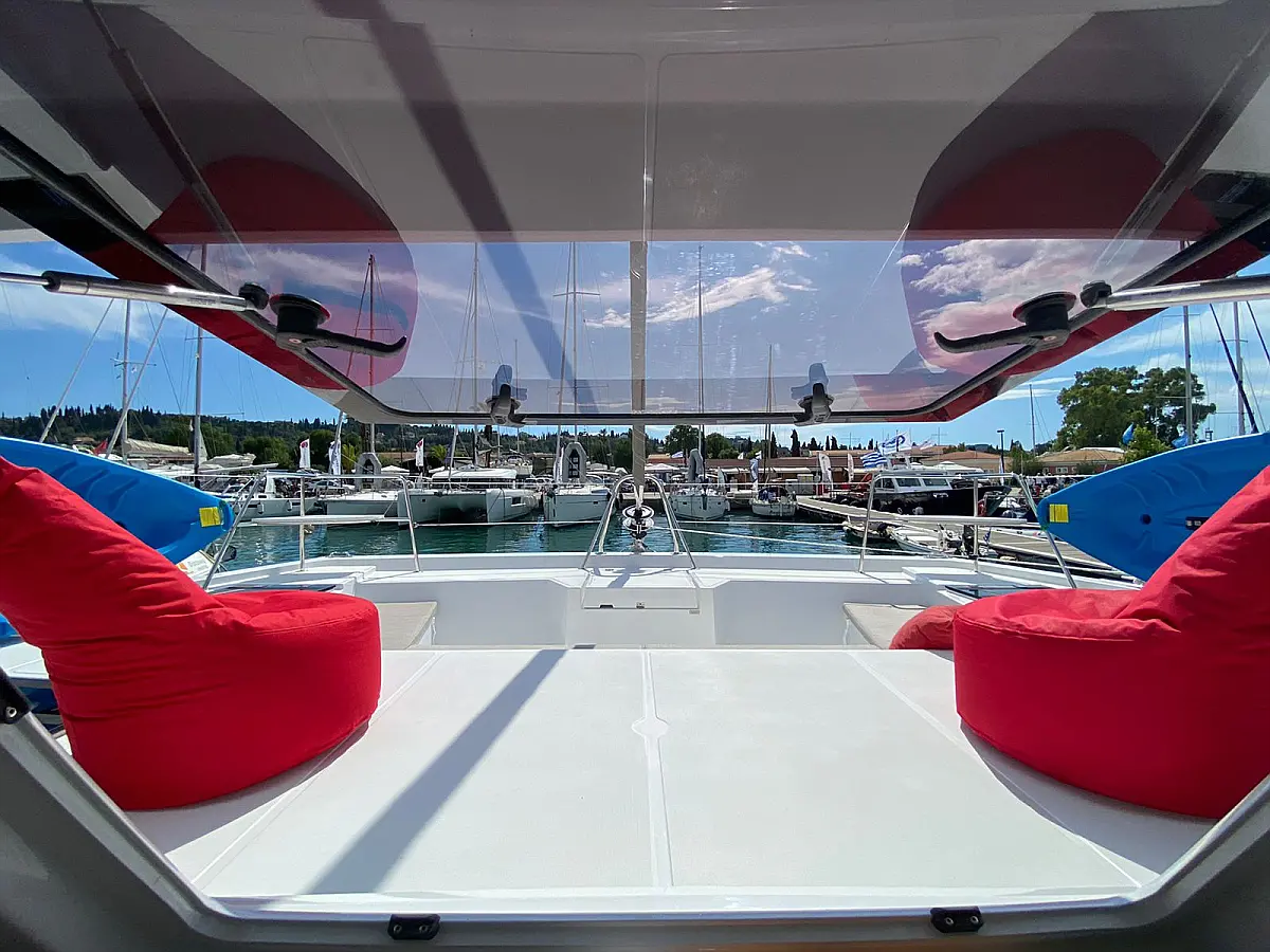 Bimini, Sprayhood, Cockpit speakers, Dinghy, Ice maker, Holding tank, Solar Panels, Cockpit cushions, Swimming platform, Flybridge, Coffee maker, Refrigerator, Inverter