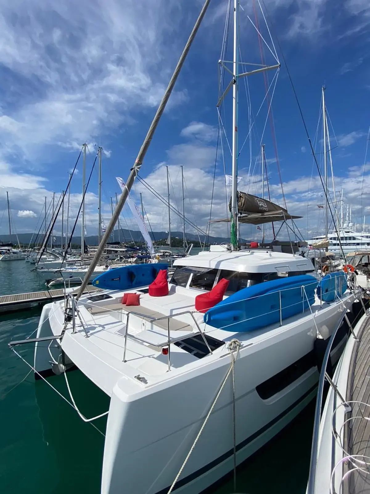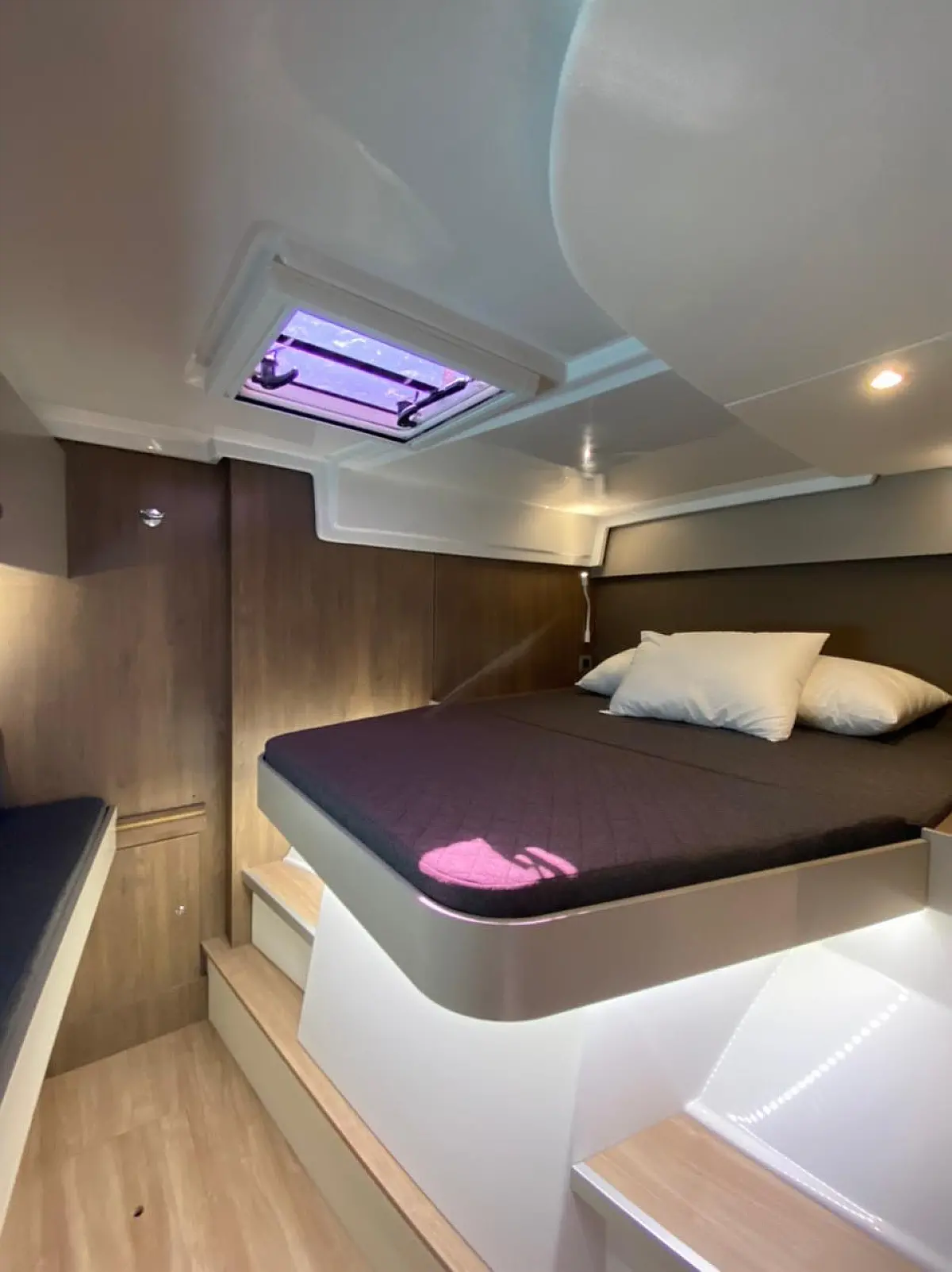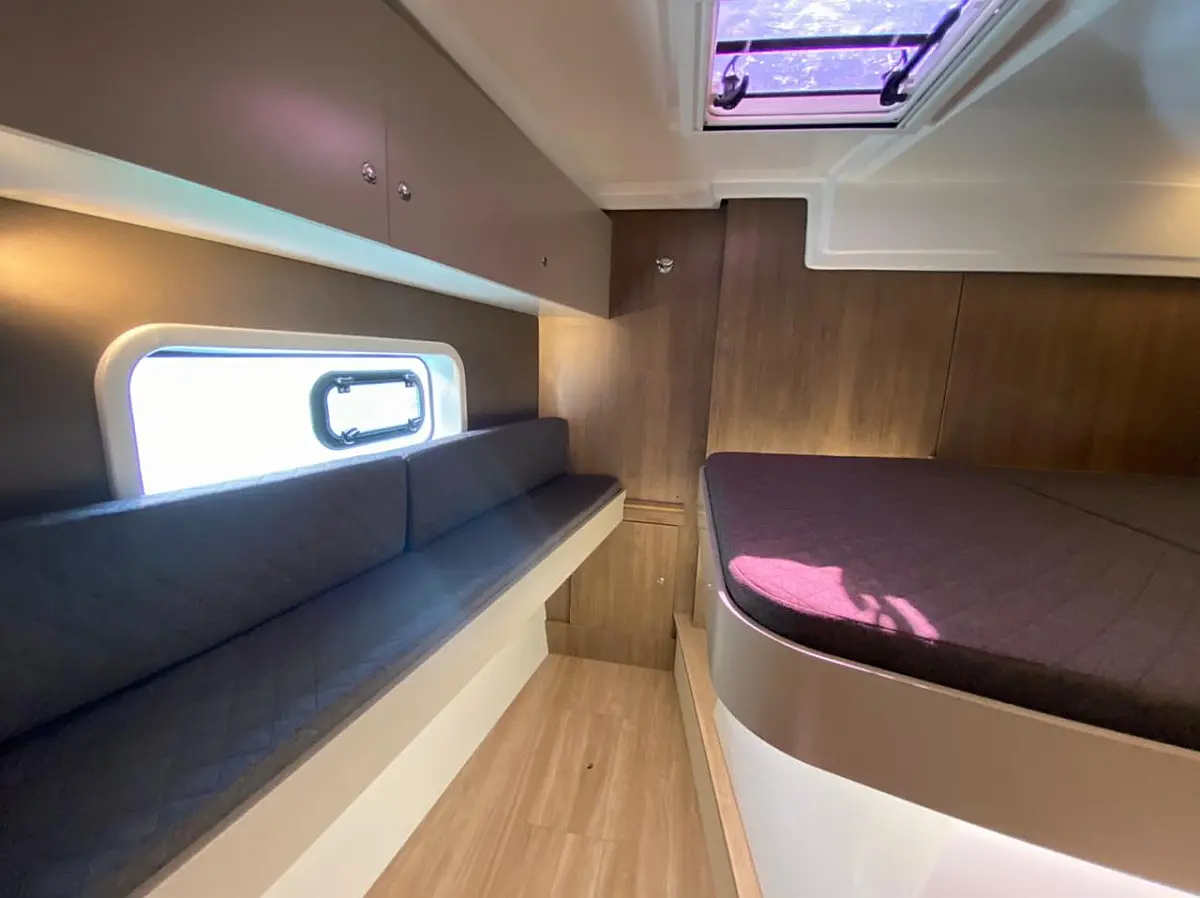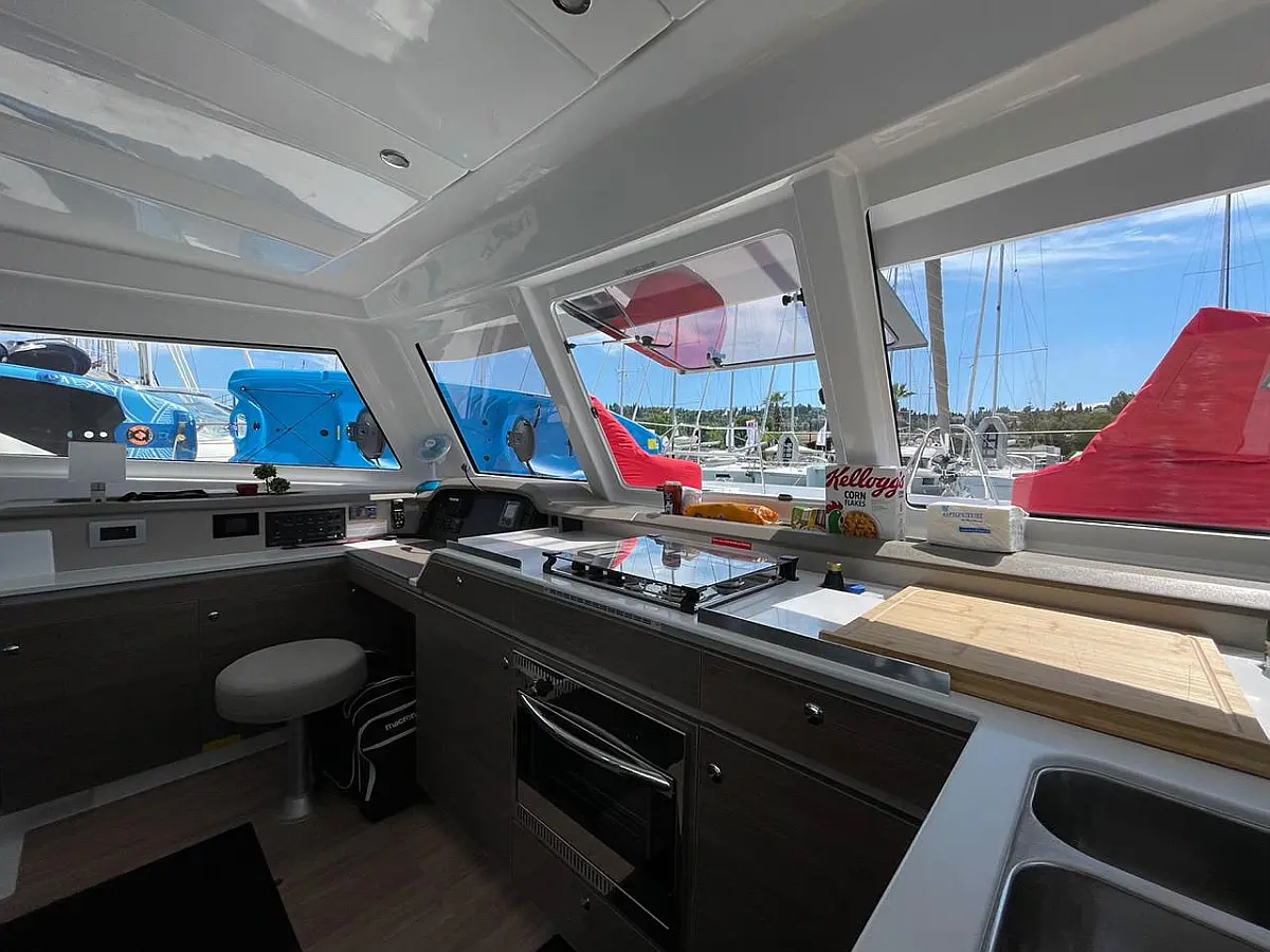 Bimini, Sprayhood, Cockpit speakers, Dinghy, Ice maker, Holding tank, Solar Panels, Cockpit cushions, Swimming platform, Flybridge, Coffee maker, Refrigerator, Inverter
