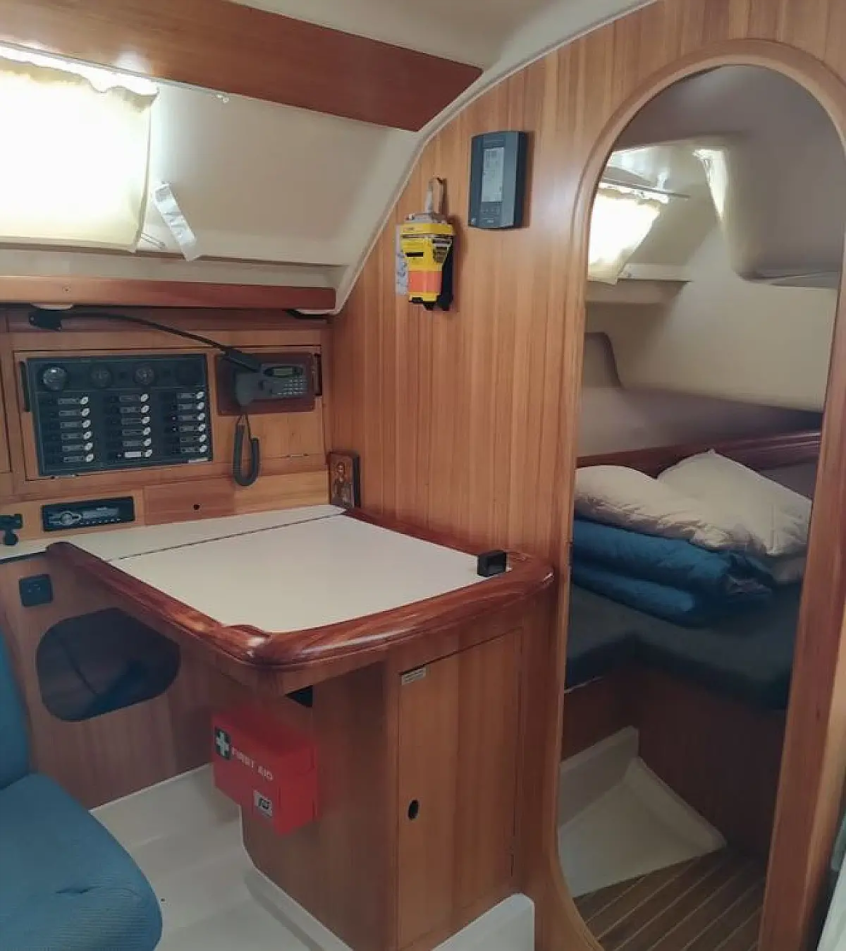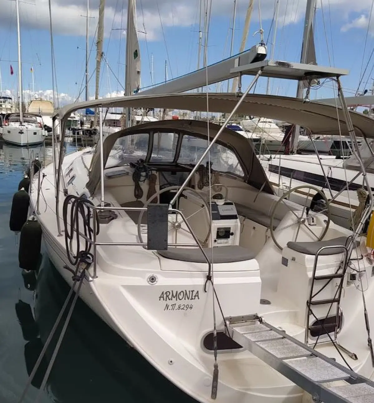 Bimini, Refrigerator, Dinghy, Outboard engine, Solar Panels, Electric toilet, Inverter, Air condition, Holding tank