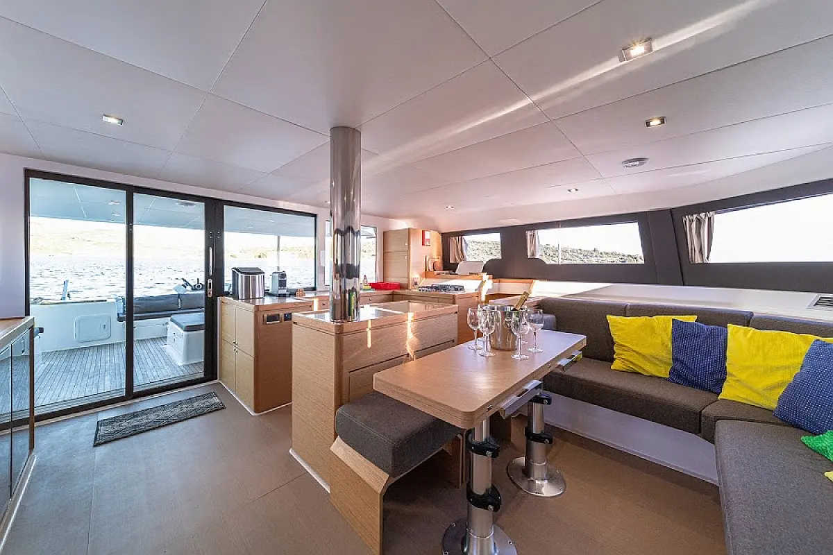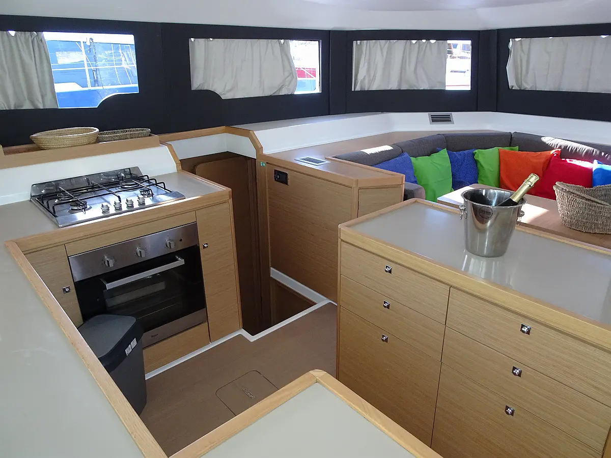 Coffee maker, Refrigerator, Holding tank, Inverter, Dishwasher, Air condition, Ice maker, Heating, Teak deck, Teak Cockpit, Sprayhood, Hydraulic gangway, Bimini, Generator, Electric toilet, Electric winches