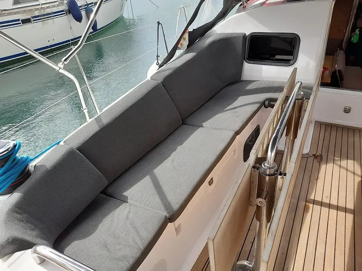 Solar Panels, Holding tank, Bimini, Sprayhood, Cockpit speakers, Dinghy, Refrigerator, Cockpit cushions