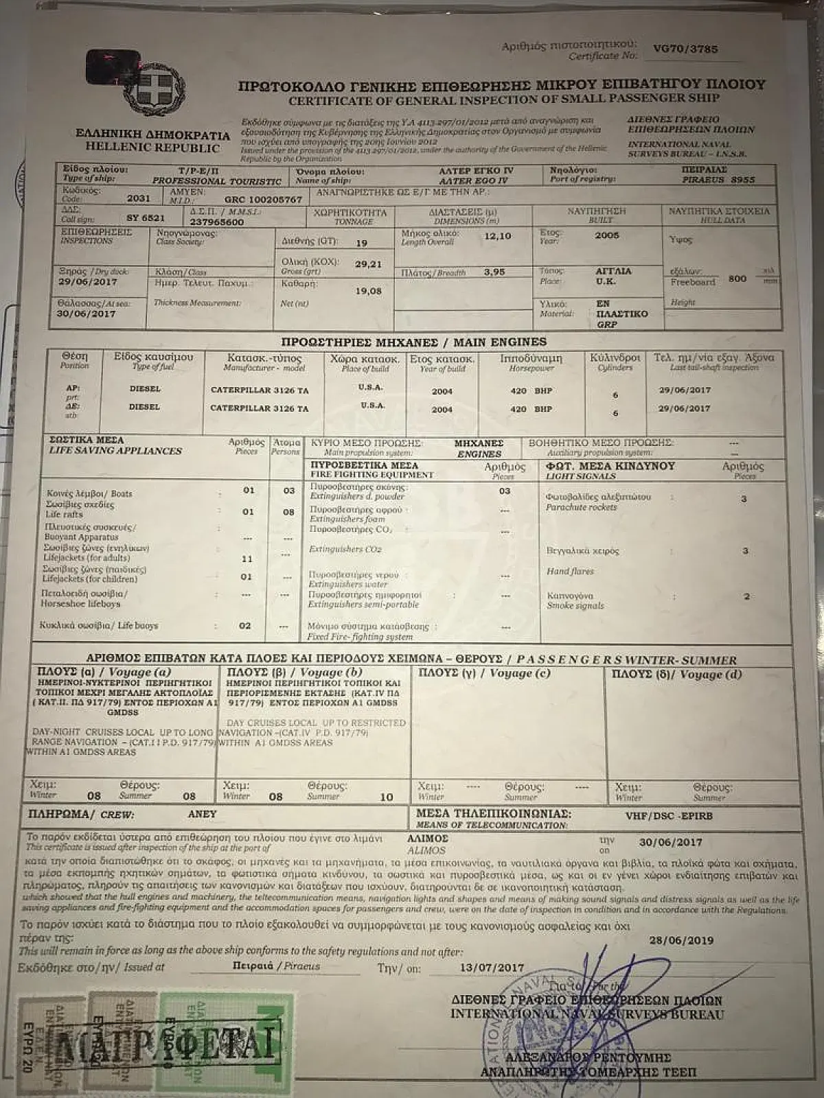 Dinghy, Refrigerator, Ice maker, Generator, Air condition, Water maker, Wi-Fi & Internet