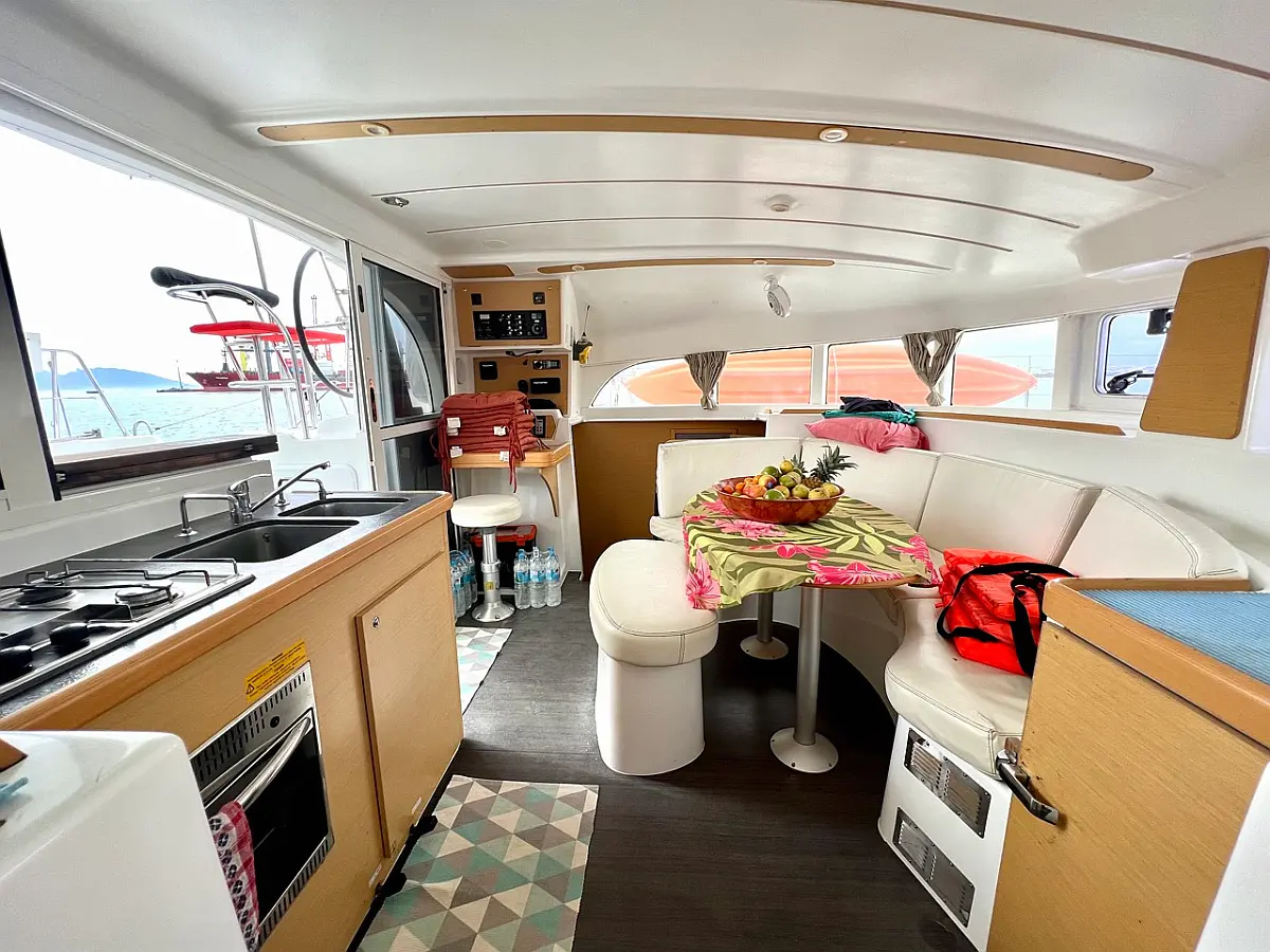 The 38 ft Lagoon 380 S2 Owner's Version Catamaran, built in 2019, is an ideal yacht for exploring the French Polynesia. With 3 comfortable cabins, 2 WC/showers, and enough berths to accommodate up to 6 guests, it provides ample space for relaxation and entertainment. This boat is available for charter.