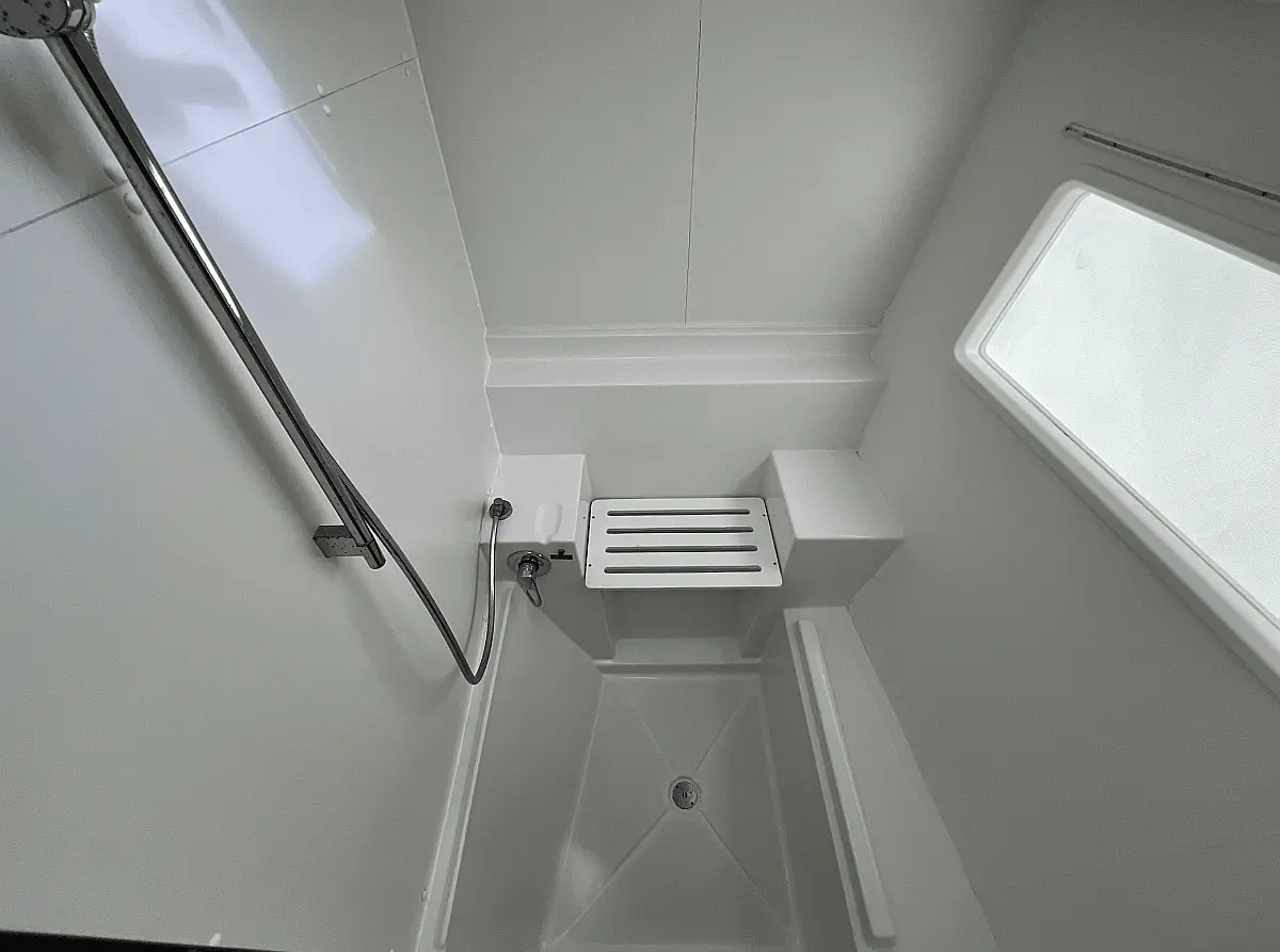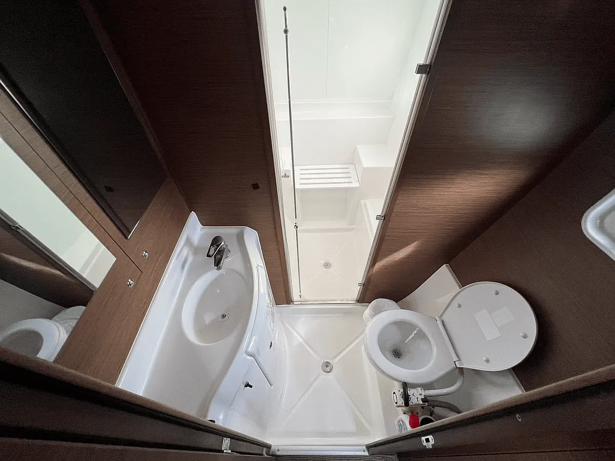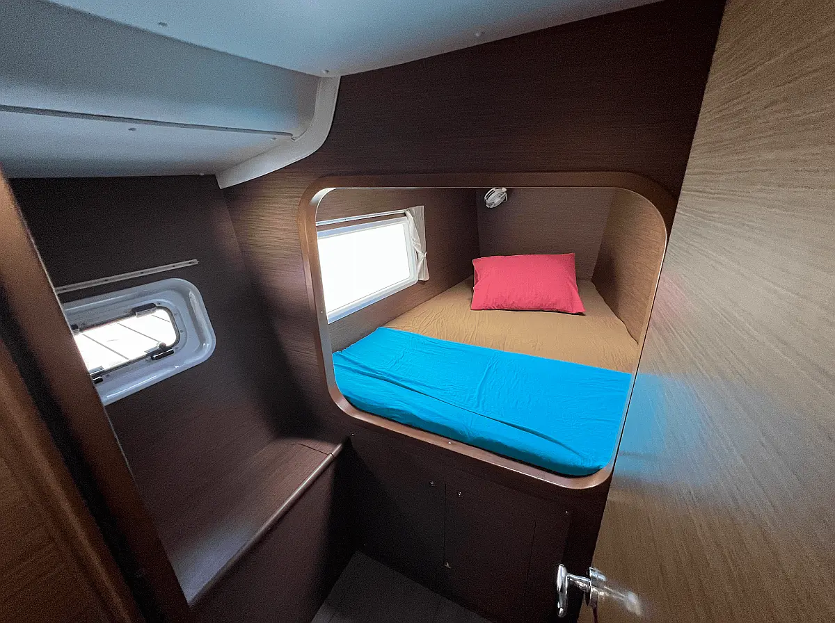 Barbecue grill in cockpit, Bimini, Cockpit cushions, Water maker, Refrigerator, Outboard engine, Solar Panels