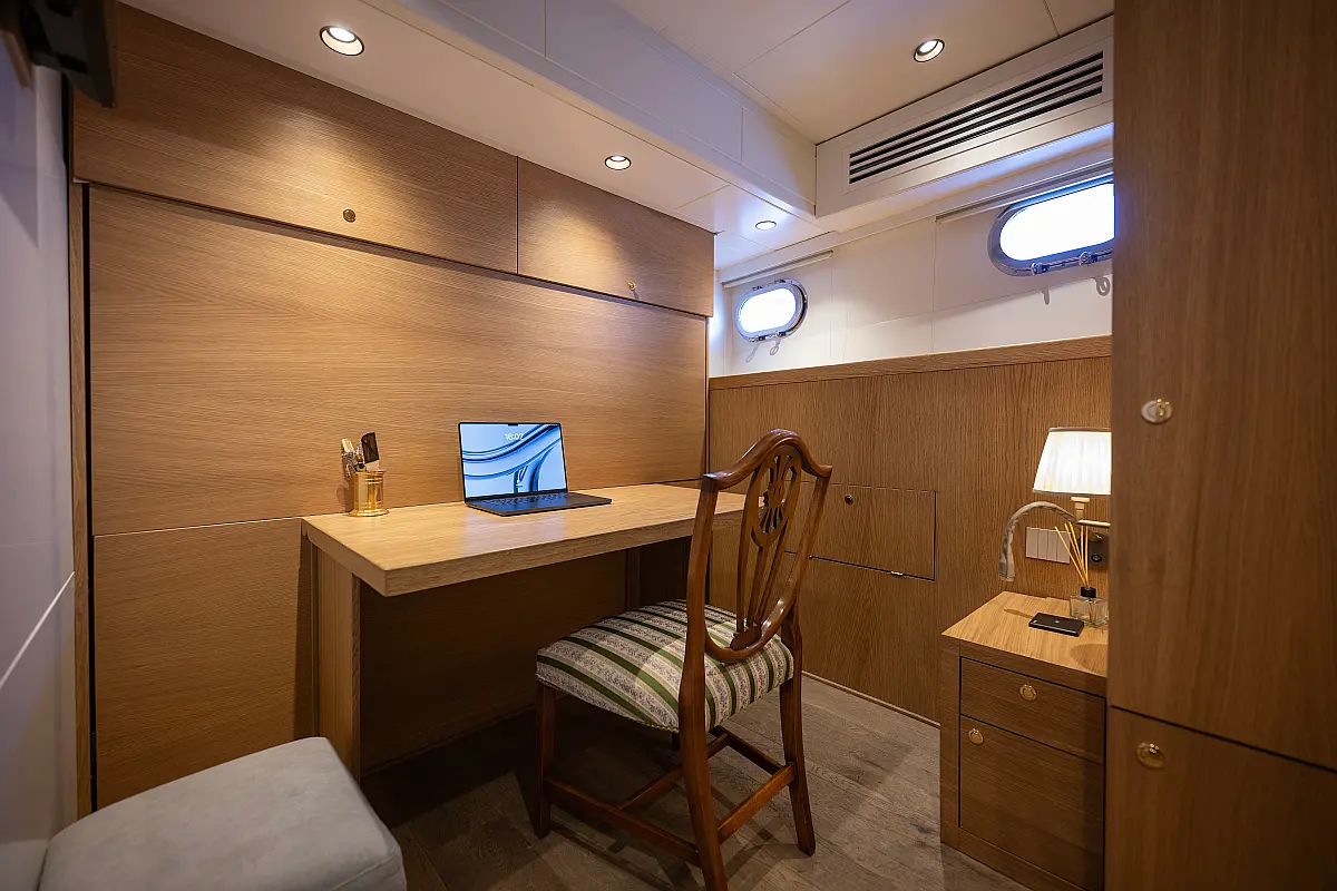 Air condition, Generator, Convertible table, Wi-Fi & Internet, Coffee maker