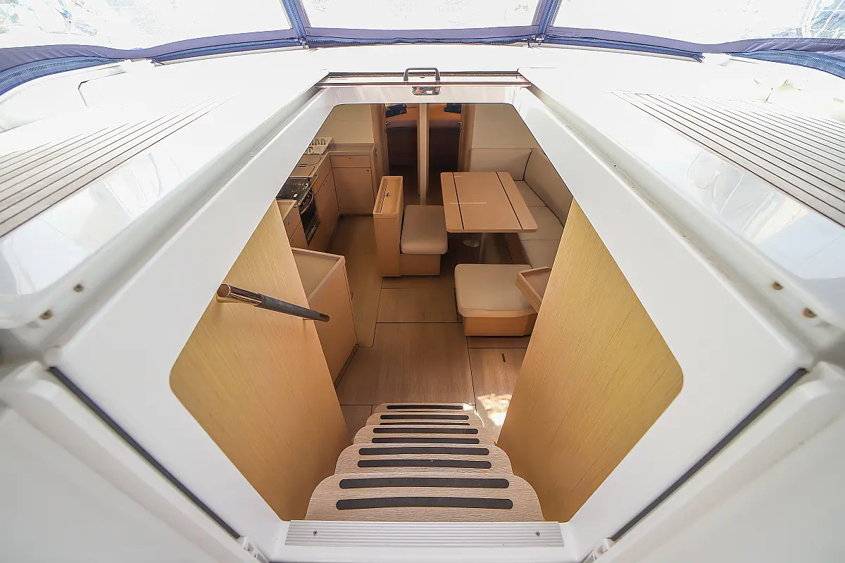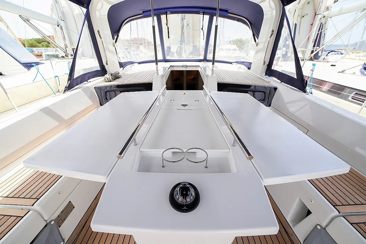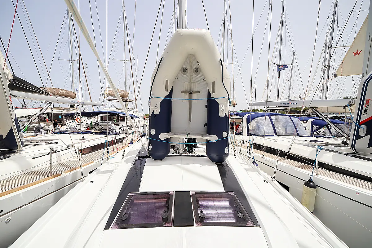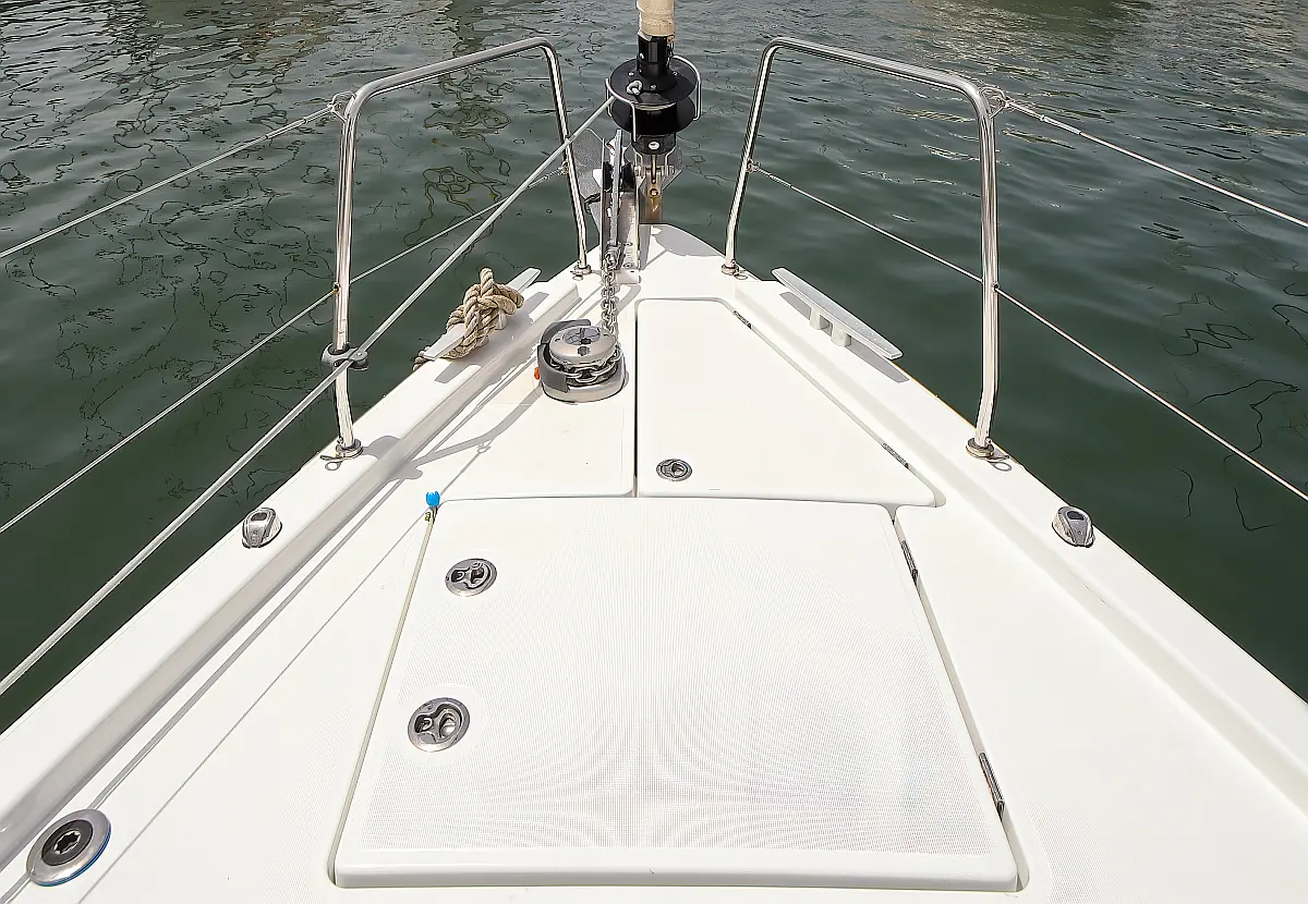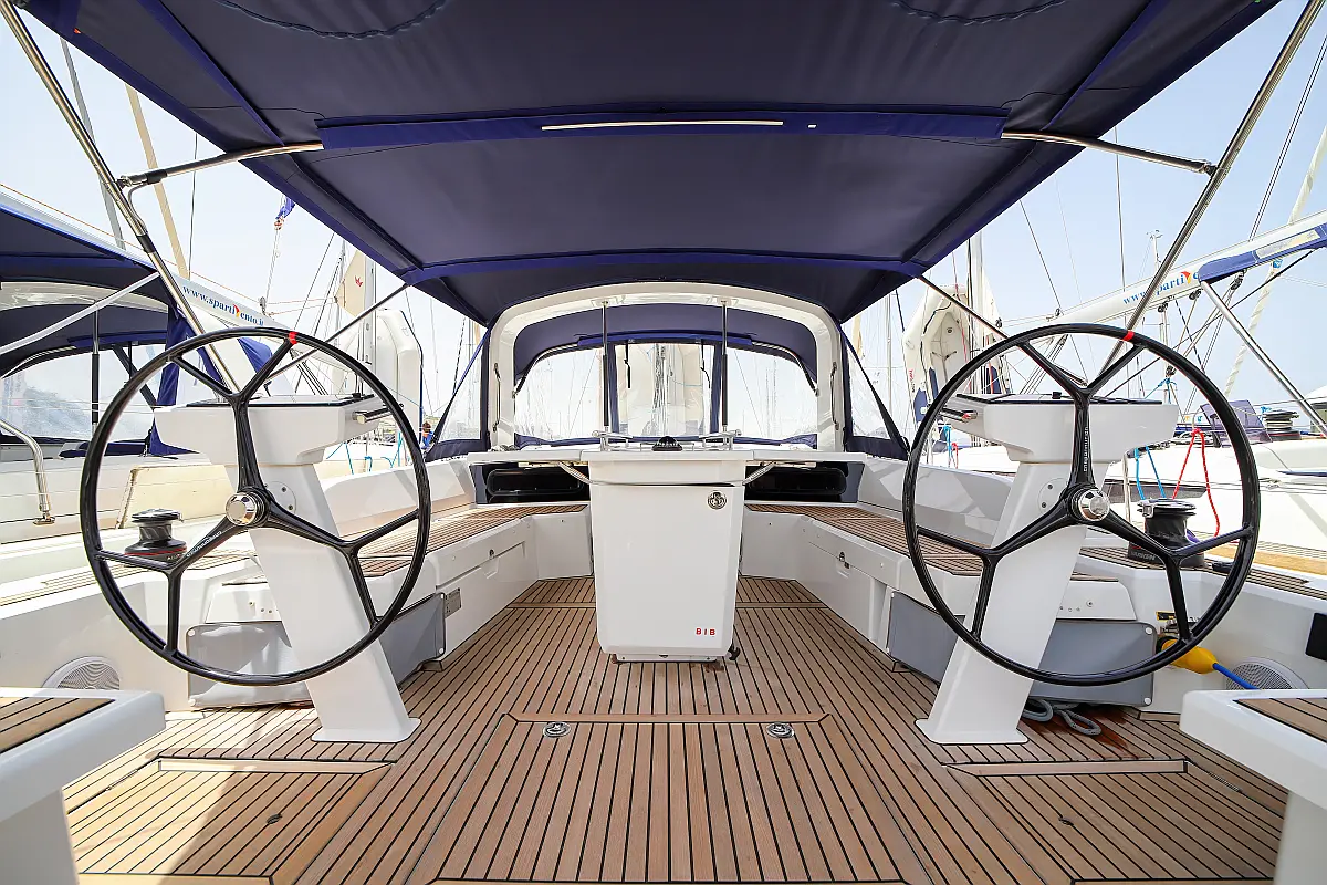 Bimini, Dinghy, Outboard engine, Teak Cockpit, Electric winches, Sprayhood, Inverter, Cockpit cushions, Electric toilet, Refrigerator