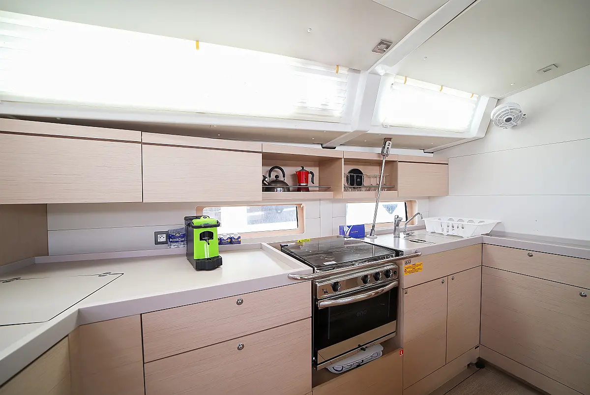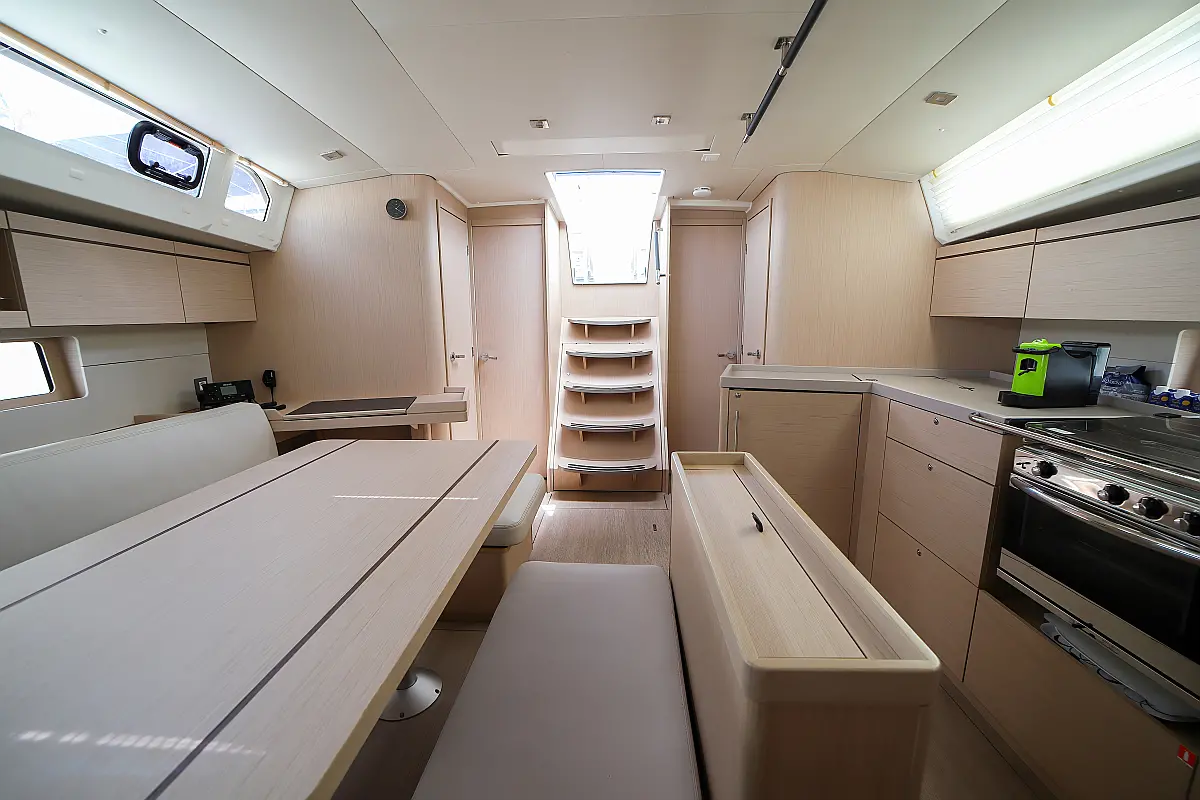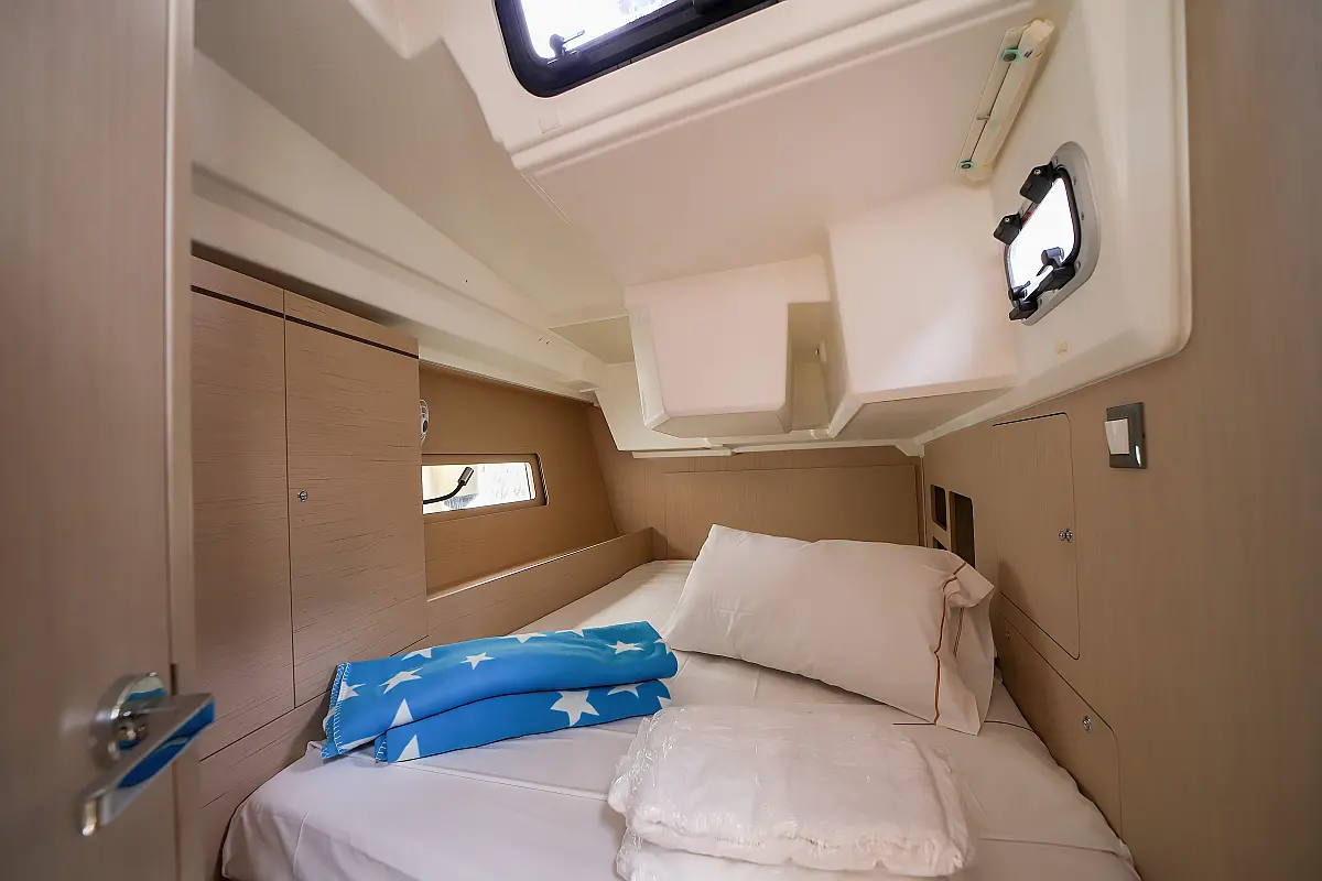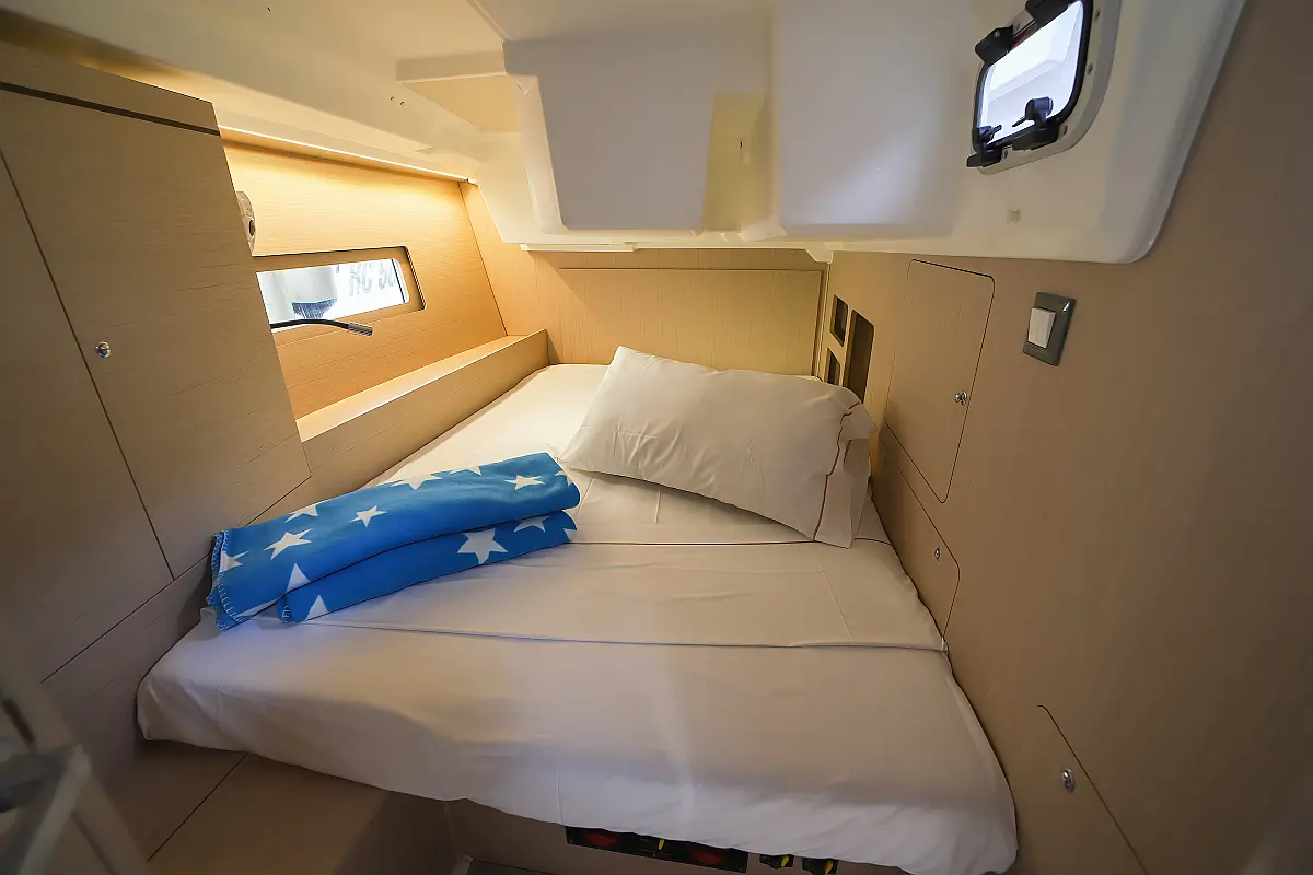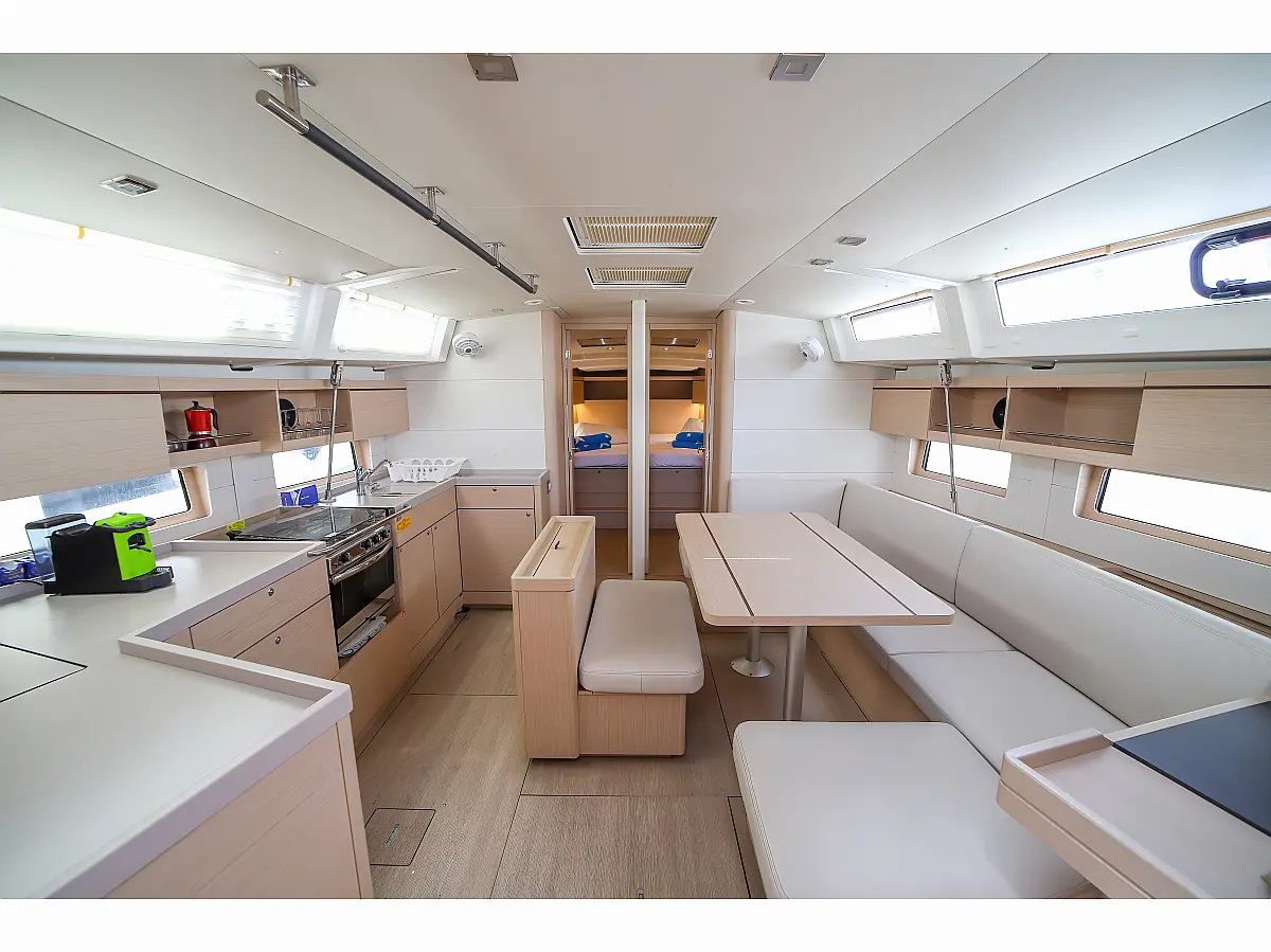 Bimini, Dinghy, Outboard engine, Teak Cockpit, Electric winches, Sprayhood, Inverter, Cockpit cushions, Electric toilet, Refrigerator