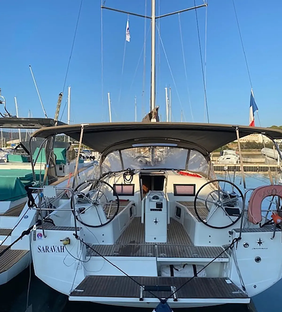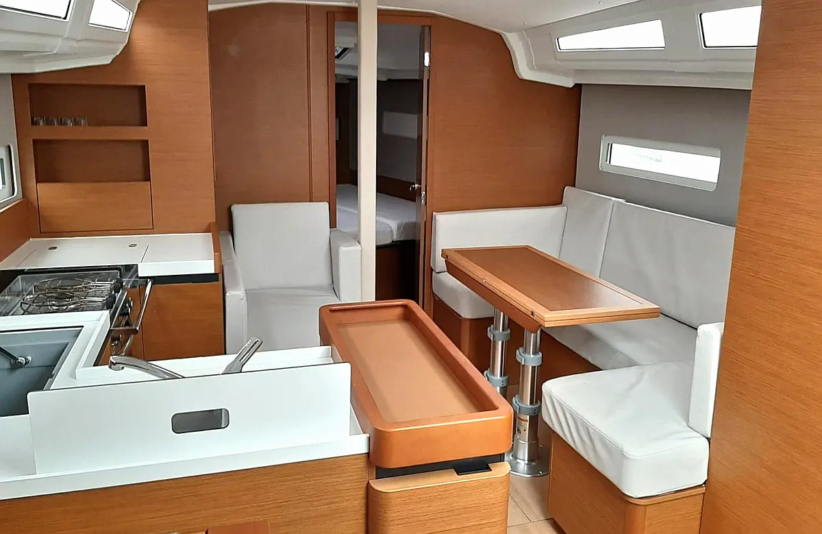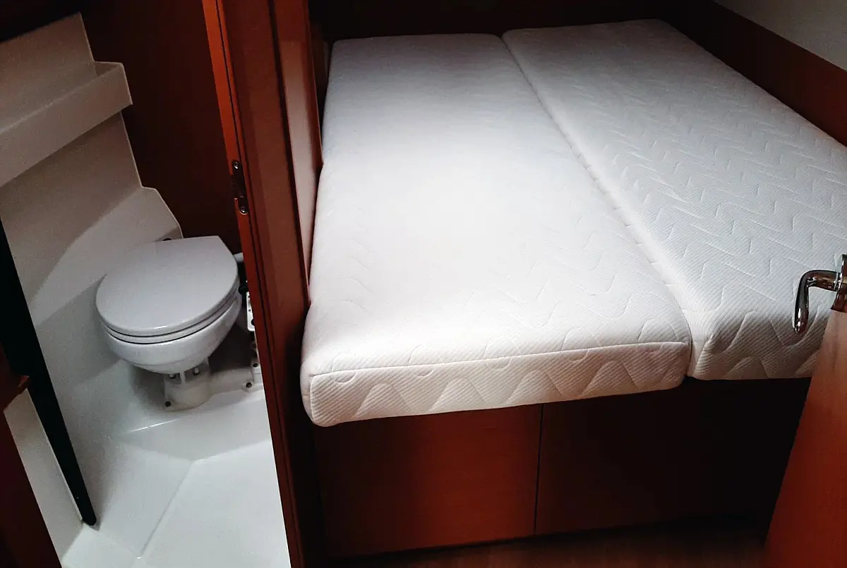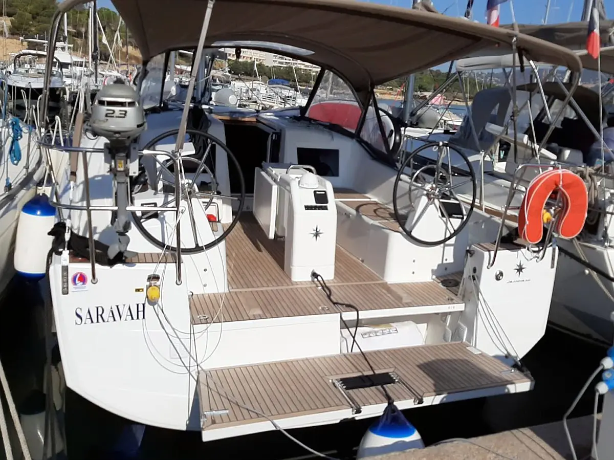 Cockpit cushions, Electric winches, Swimming platform, Bimini, Dinghy, Sprayhood, Teak Cockpit, Refrigerator, Convertible table, Electric toilet, Cockpit speakers