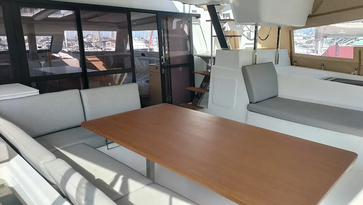 Climatisation, Plate-forme de baignade, Toilette électrique, Réfrigérateur, Générateur, Panneaux solaires, Annexe, Coussins de cockpit, Barbecue dans le cockpit, Machine à café, Moteur hors-bord, Dissalateur
