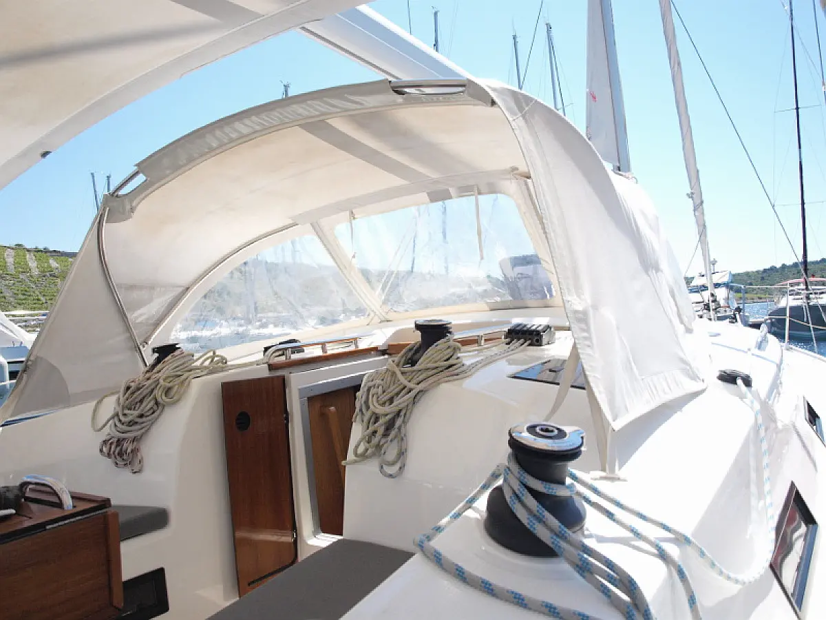 Panneaux solaires, Capote de roof, Wi-Fi et Internet, Bimini, Coussins de cockpit