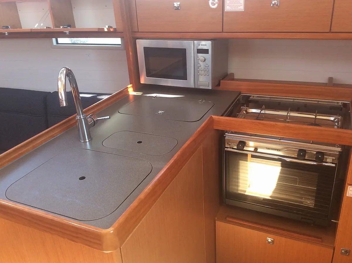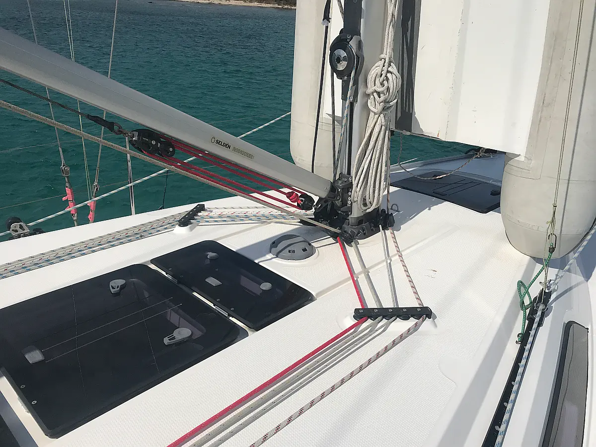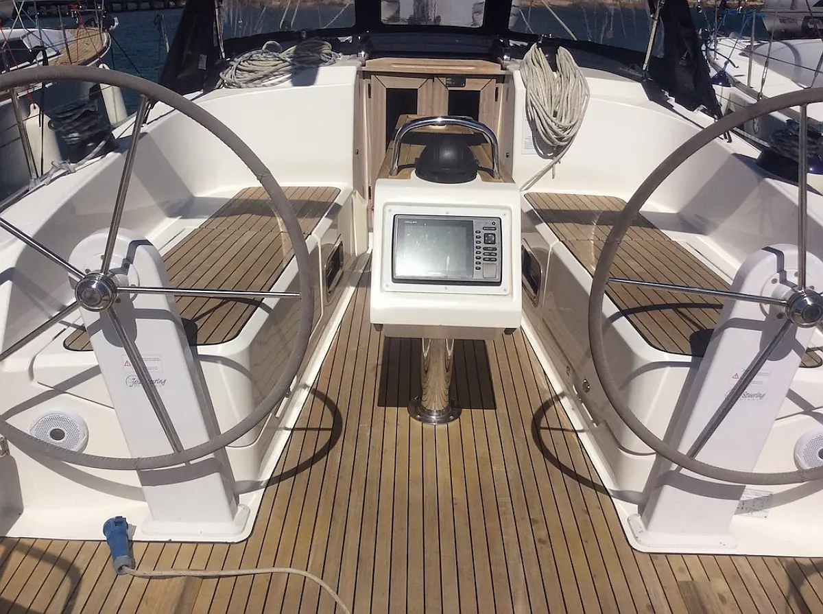 Coussins de cockpit, Enceinte dans le cokpit, Annexe, Toilette électrique, Capote de roof, Teak dans le cockpit , Bimini