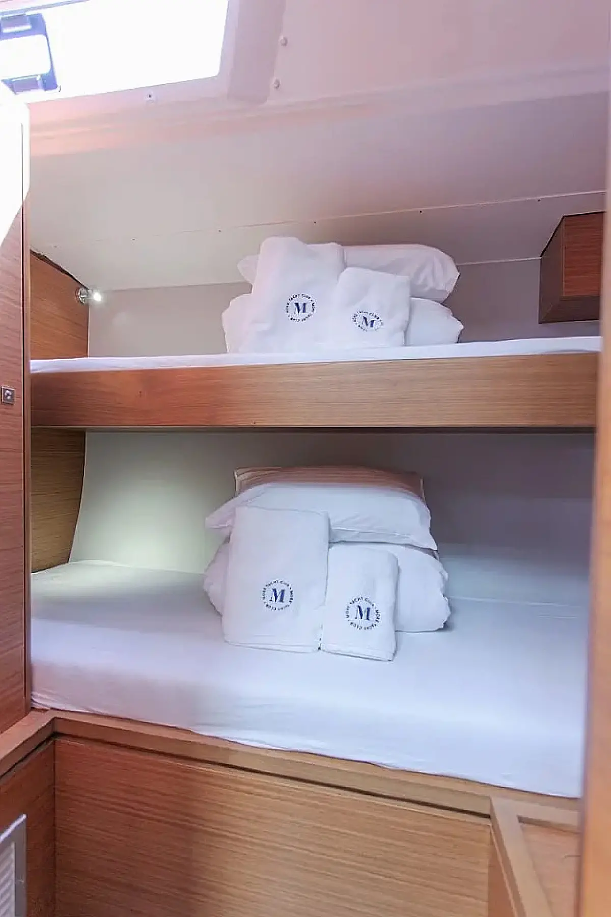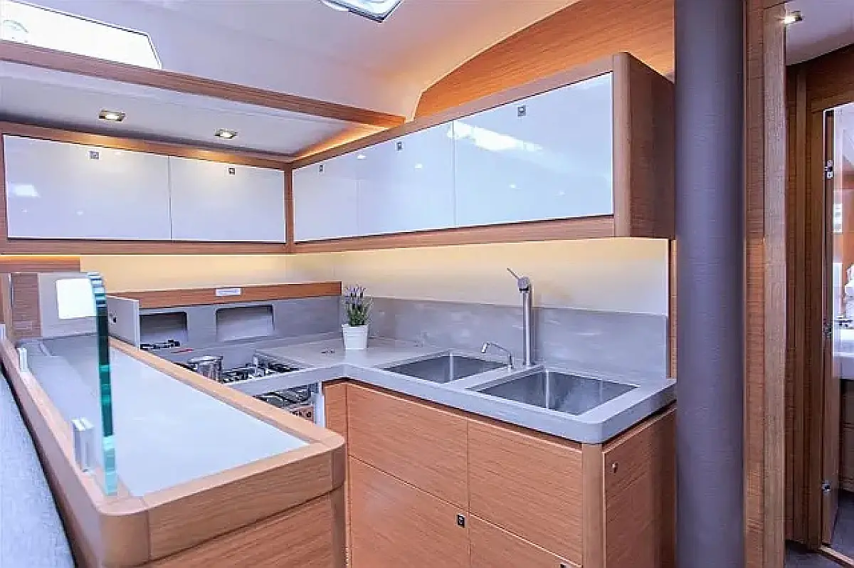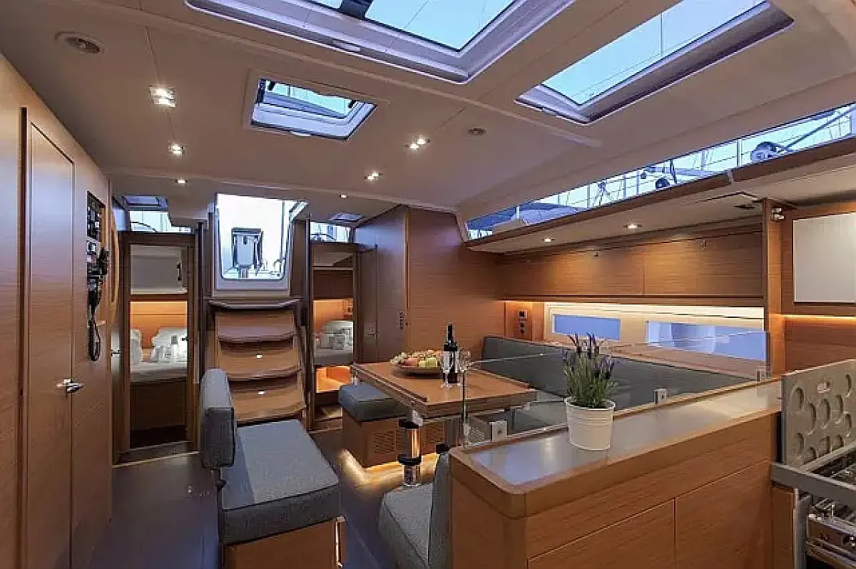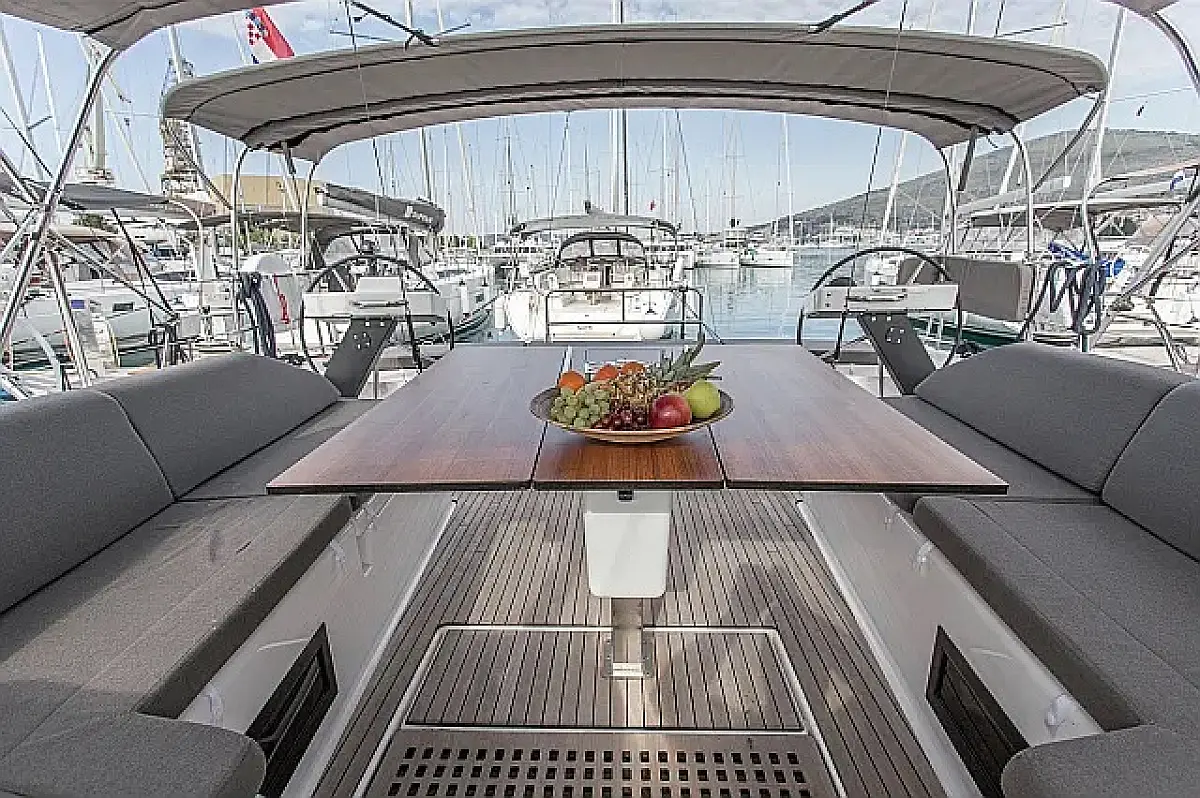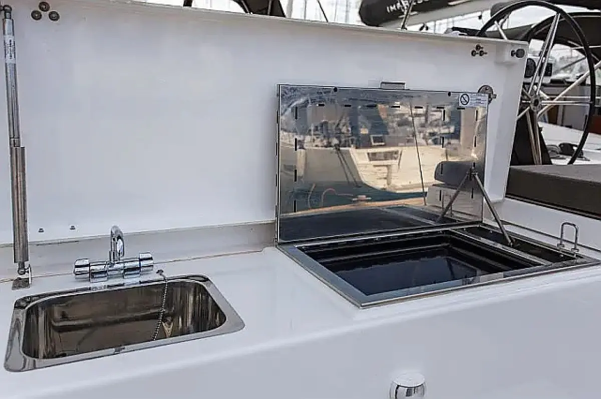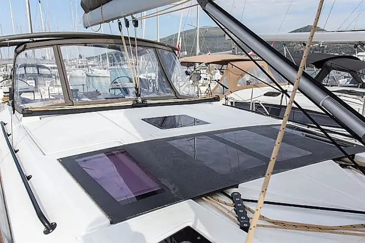 Climatisation, Plate-forme de baignade, Bimini, Coussins de cockpit, Enceinte dans le cokpit, Annexe, Réfrigérateur, Toilette électrique, Générateur, Chauffage, Réservoir d'eaux usées, Capote de roof, Cockpit en teck, Wi-Fi et Internet