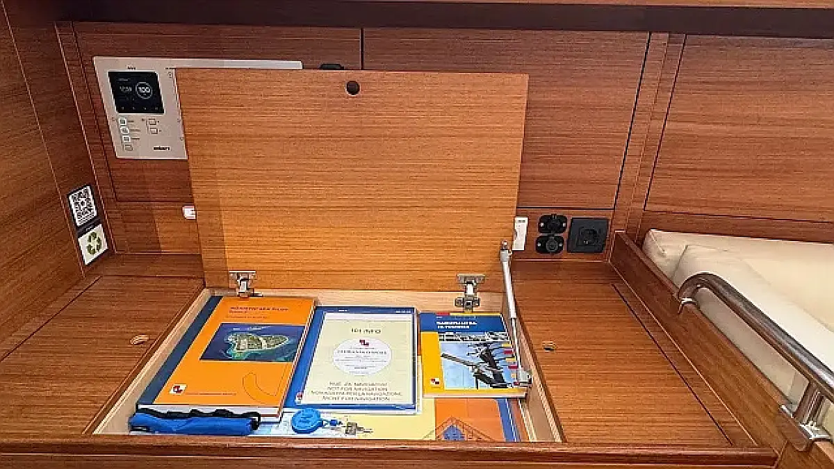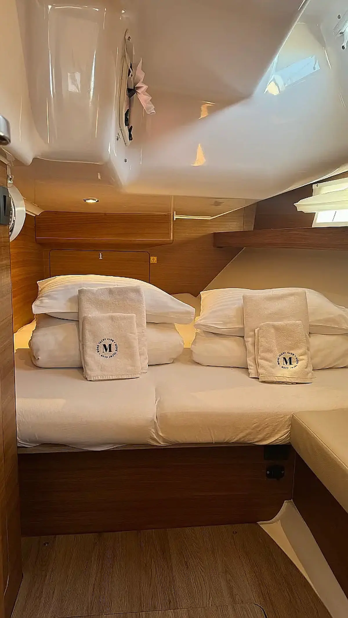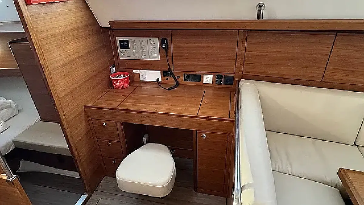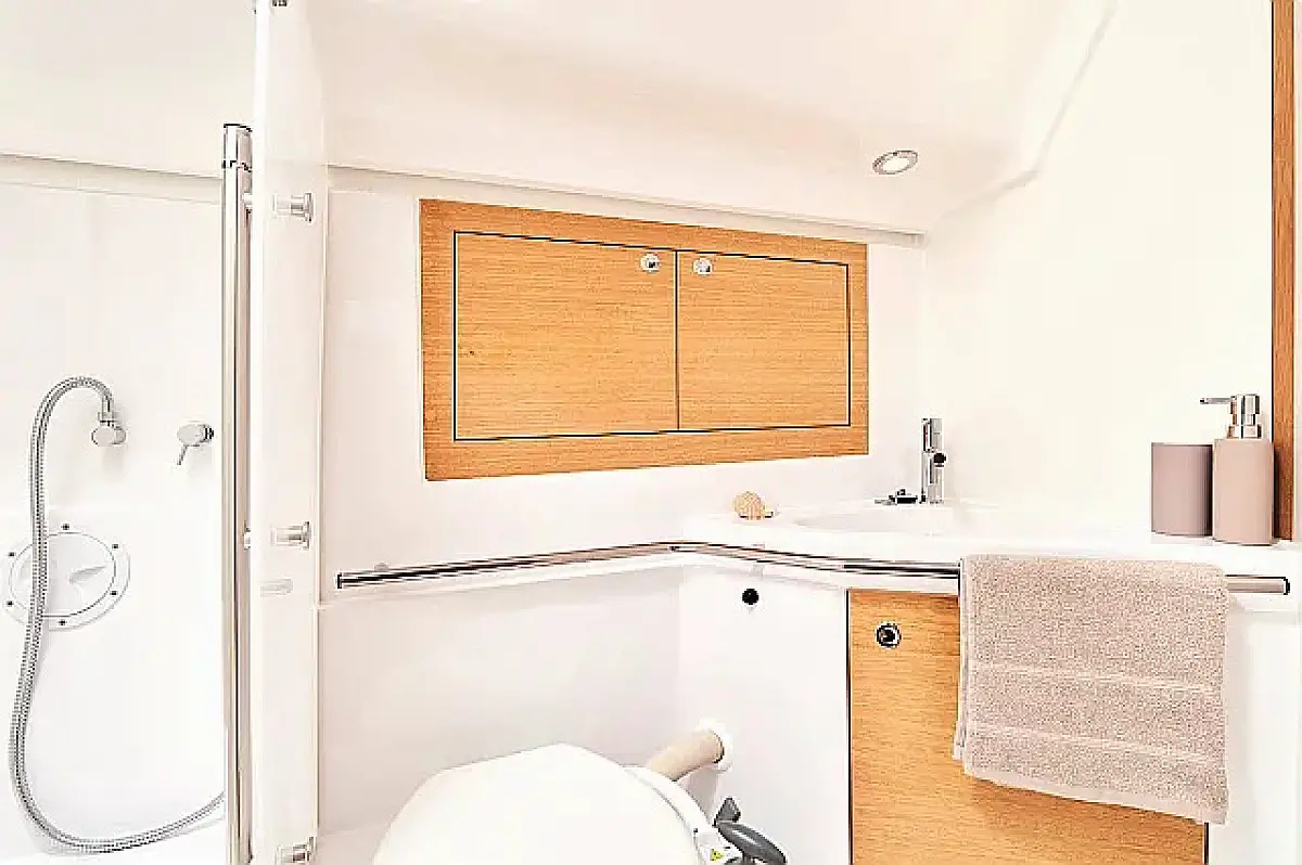 Plate-forme de baignade, Bimini, Coussins de cockpit, Enceinte dans le cokpit, Réfrigérateur, Chauffage, Réservoir d'eaux usées, Convertisseur, Capote de roof, Cockpit en teck, Wi-Fi et Internet