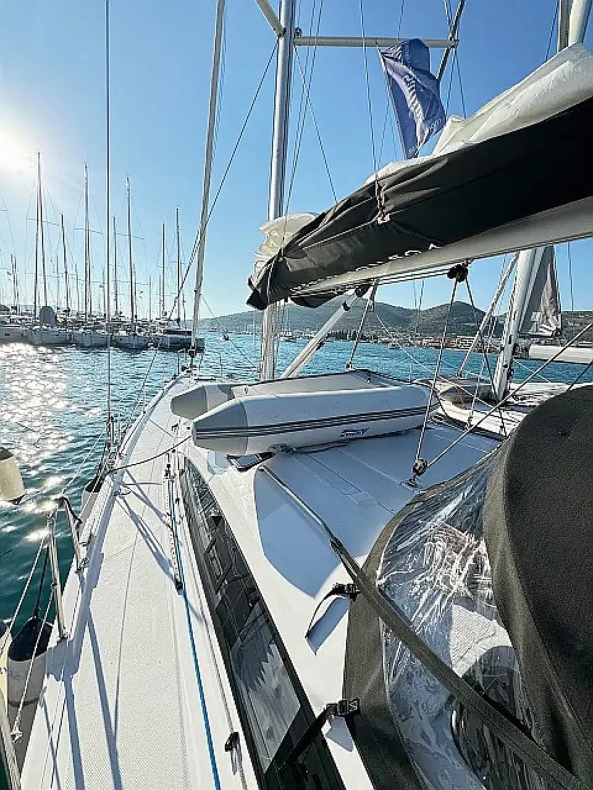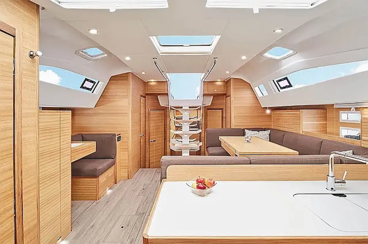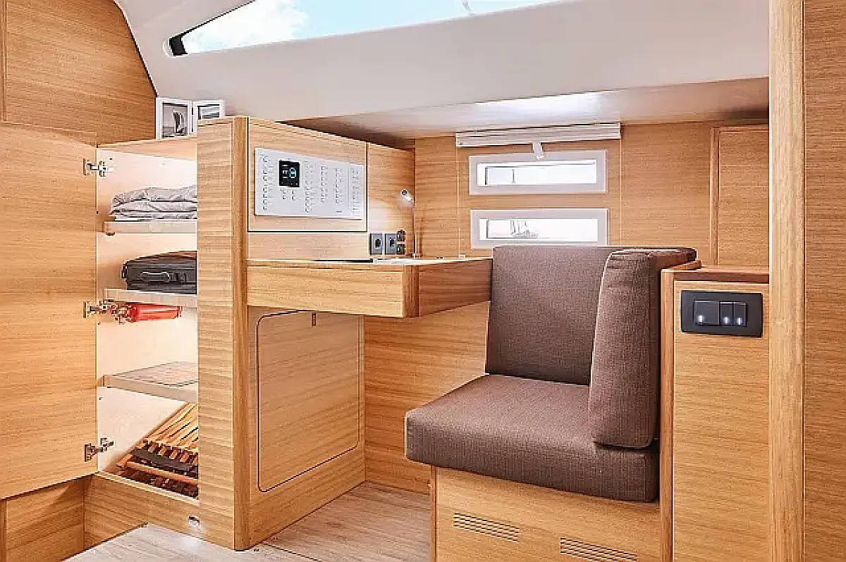 Réfrigérateur, Plate-forme de baignade, Bimini, Coussins de cockpit, Enceinte dans le cokpit, Annexe, Chauffage, Réservoir d'eaux usées, Capote de roof, Cockpit en teck, Wi-Fi et Internet