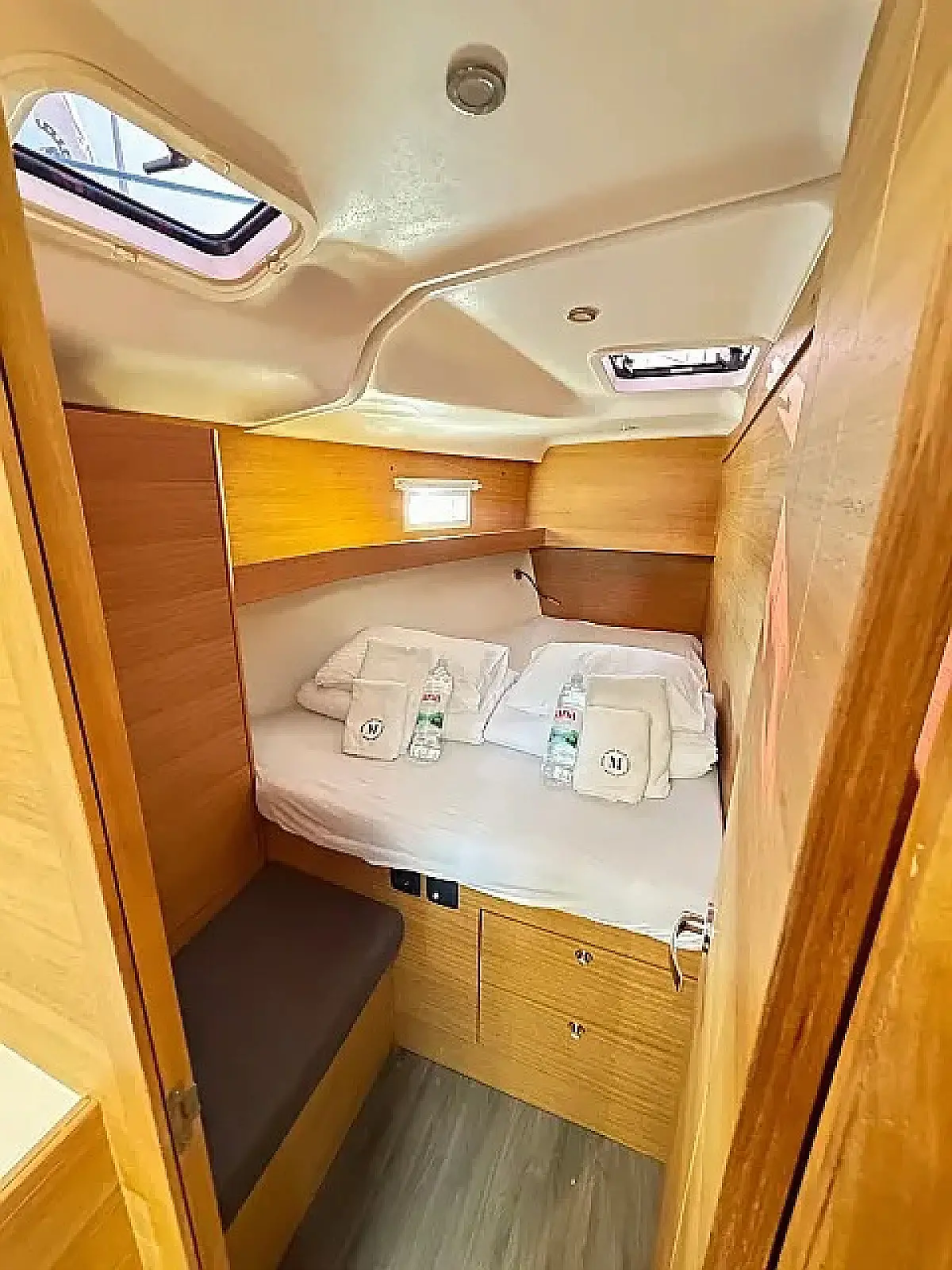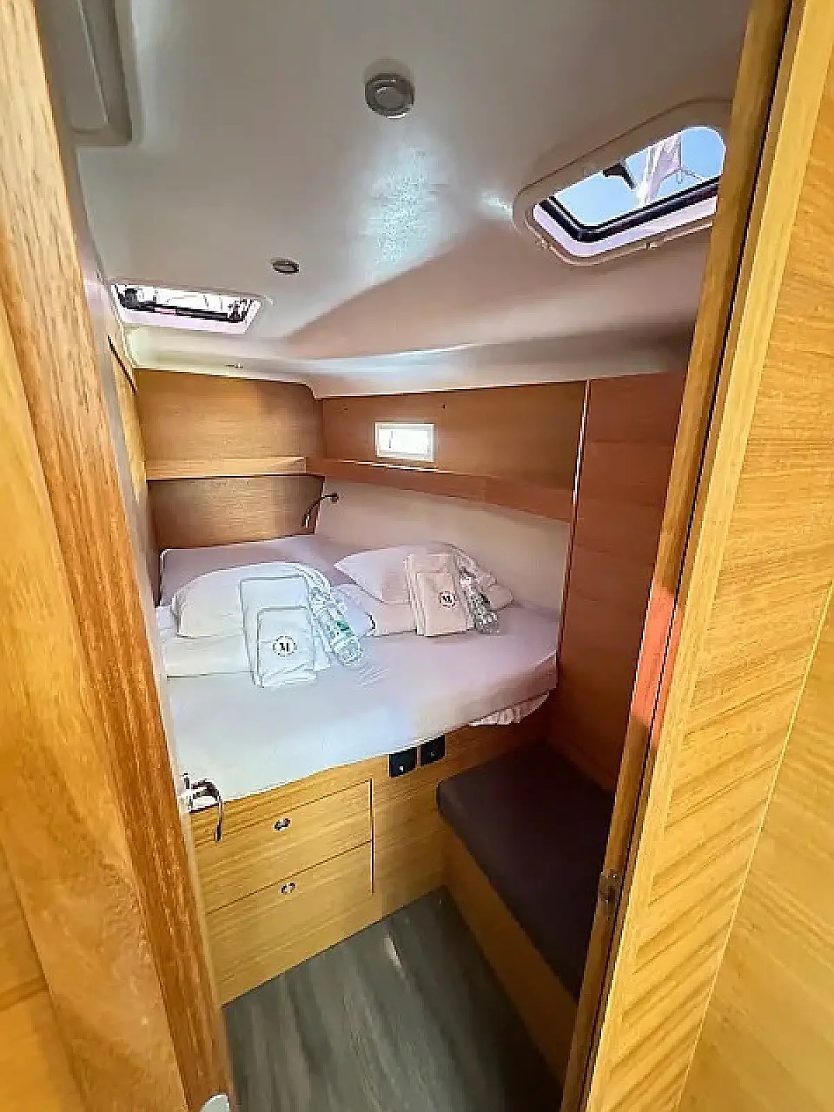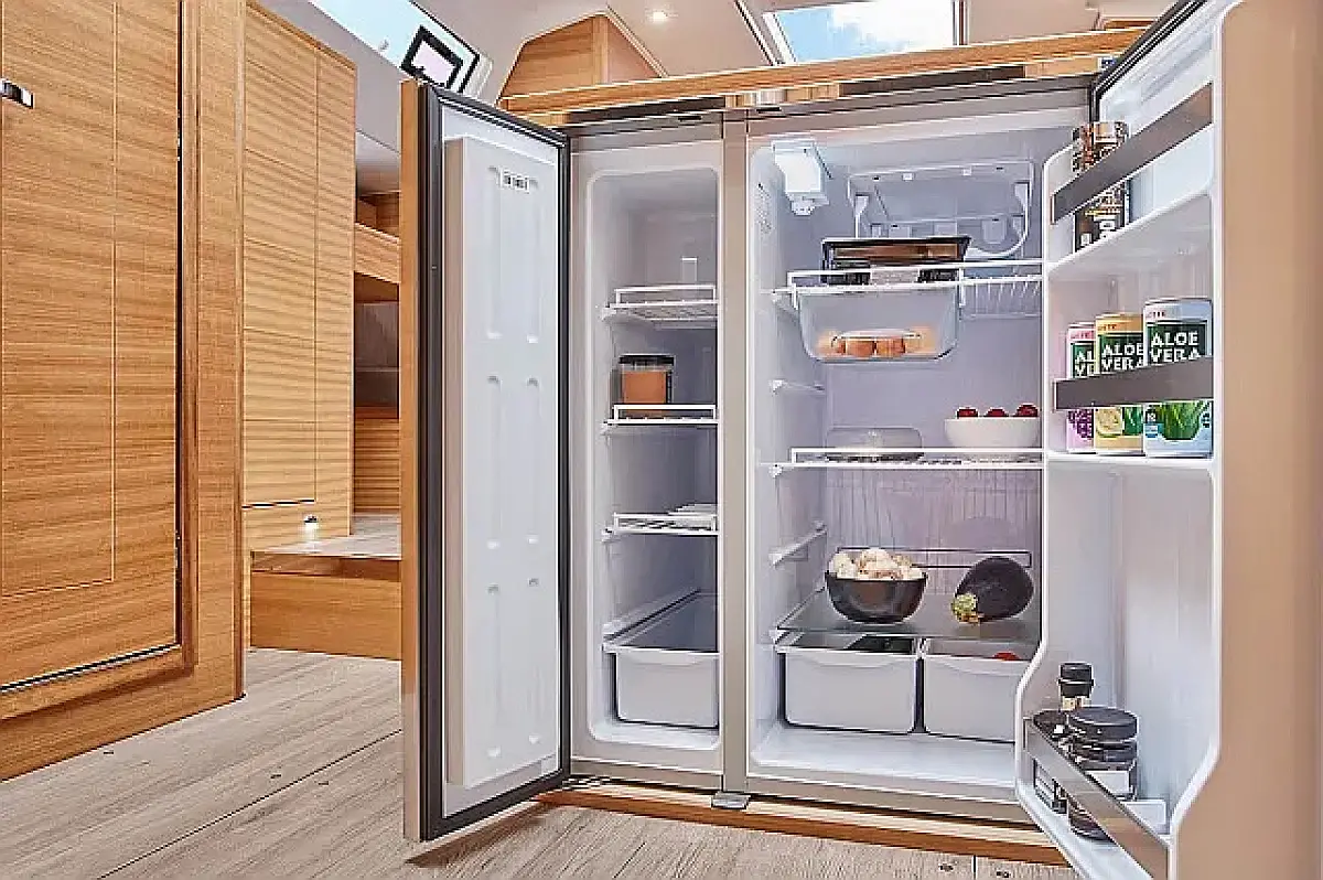 Réfrigérateur, Plate-forme de baignade, Bimini, Coussins de cockpit, Enceinte dans le cokpit, Annexe, Chauffage, Réservoir d'eaux usées, Capote de roof, Cockpit en teck, Wi-Fi et Internet