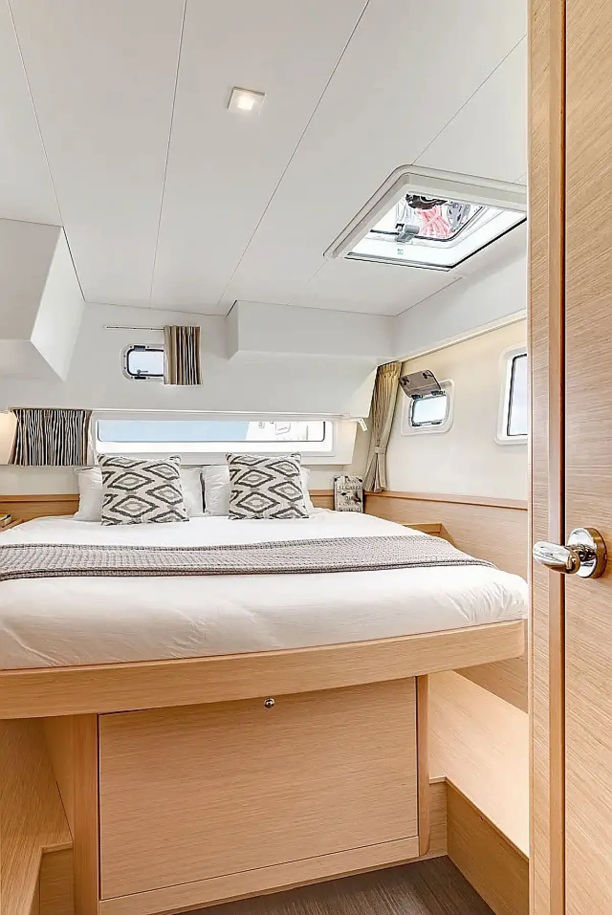 Réfrigérateur, Climatisation, Bimini, Coussins de cockpit, Enceinte dans le cokpit, Annexe, Machine à café, Toilette électrique, Générateur, Chauffage, Réservoir d'eaux usées, Convertisseur, Moteur hors-bord, Cockpit en teck, Wi-Fi et Internet