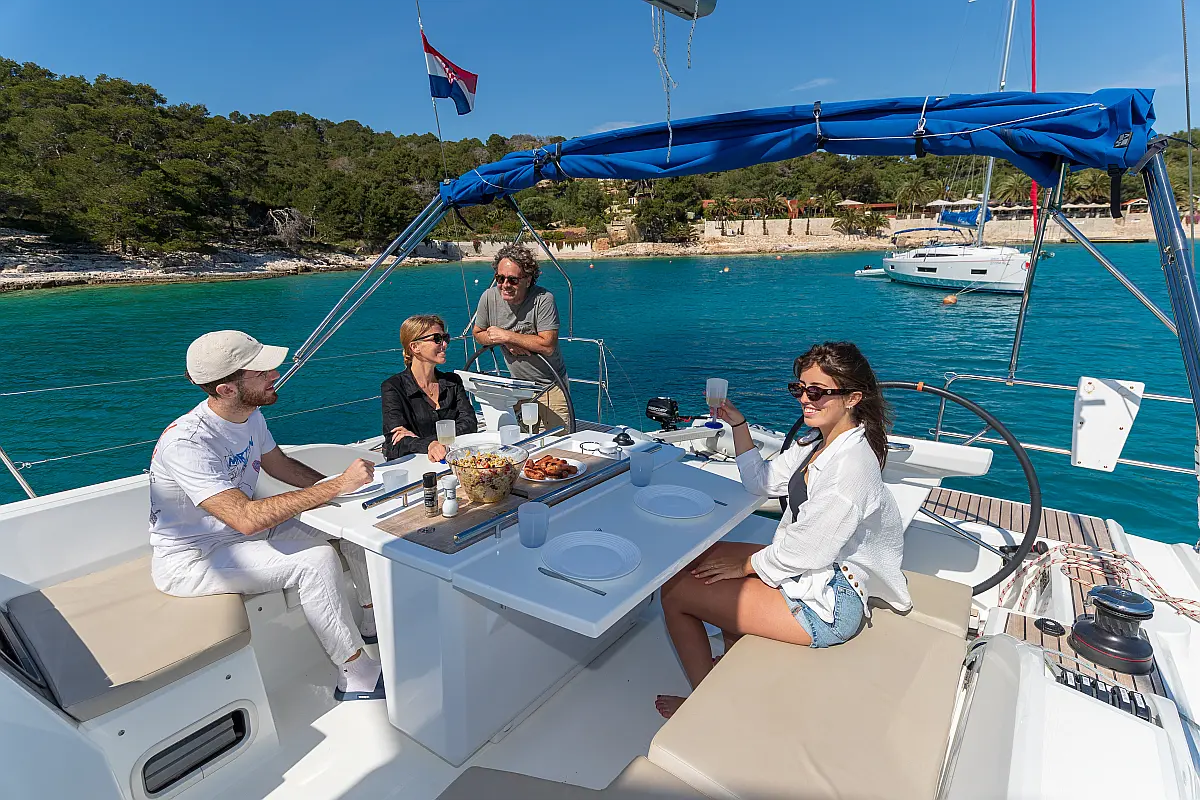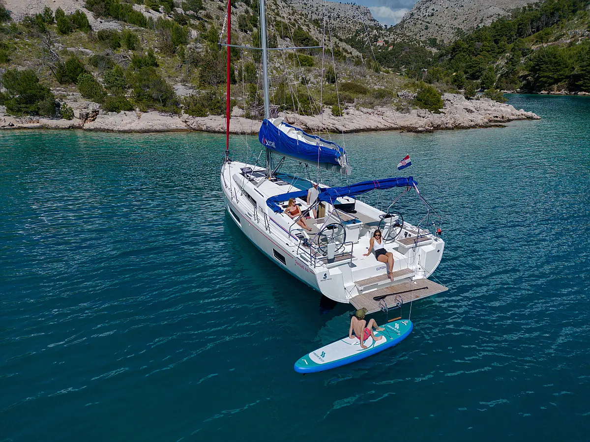 Réfrigérateur, Machine à café, Enceinte dans le cokpit, Coussins de cockpit, Annexe, Bimini, Capote de roof